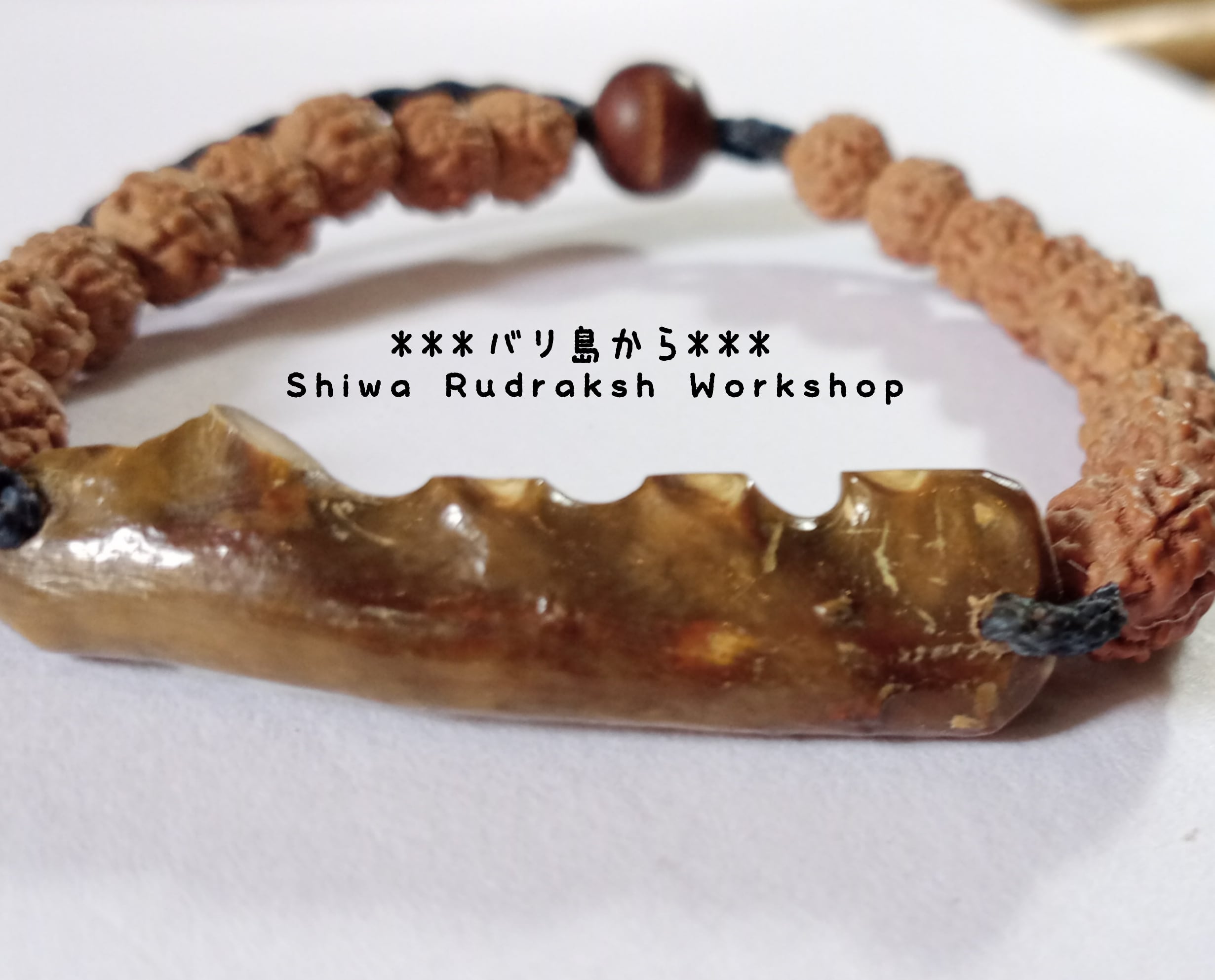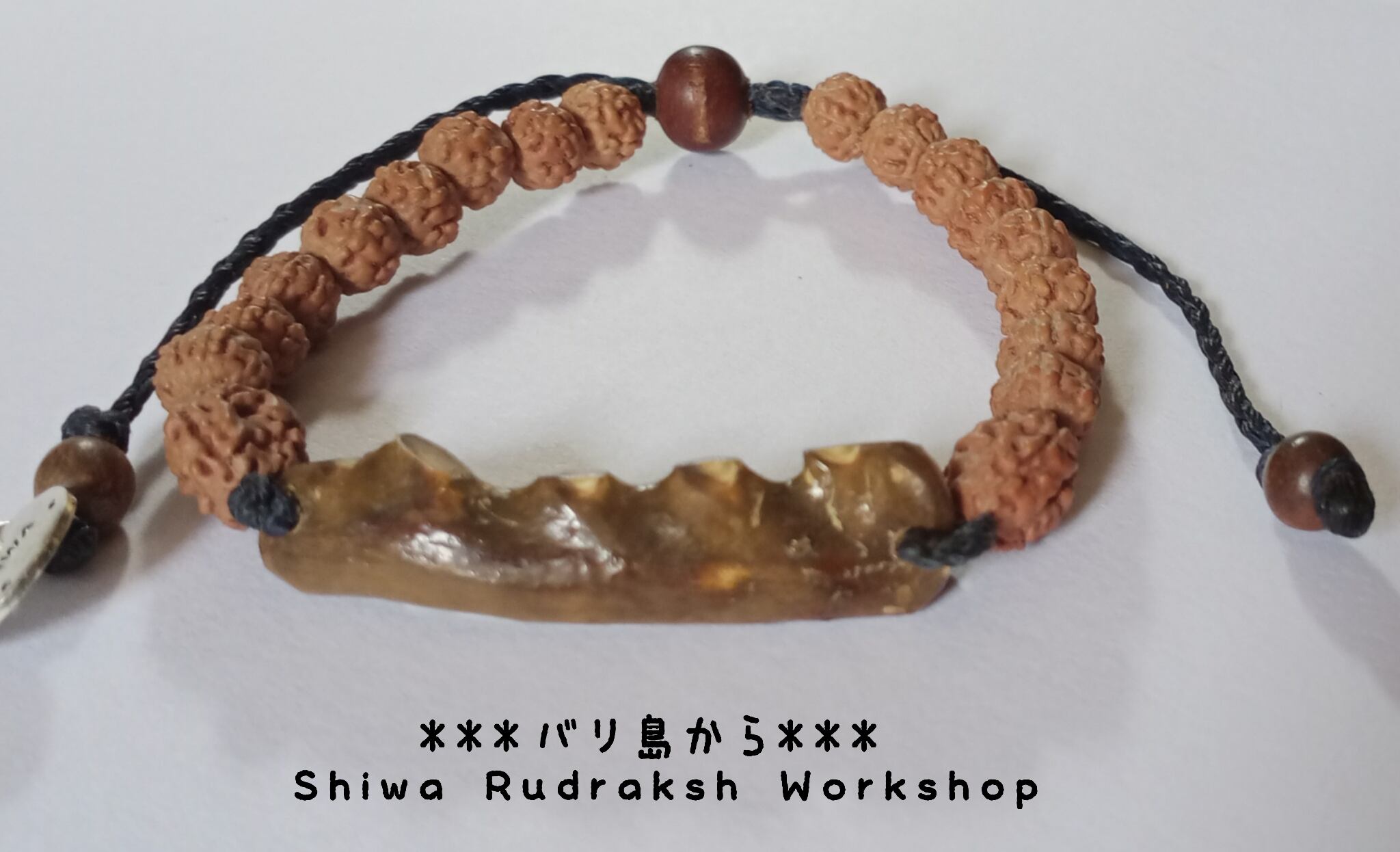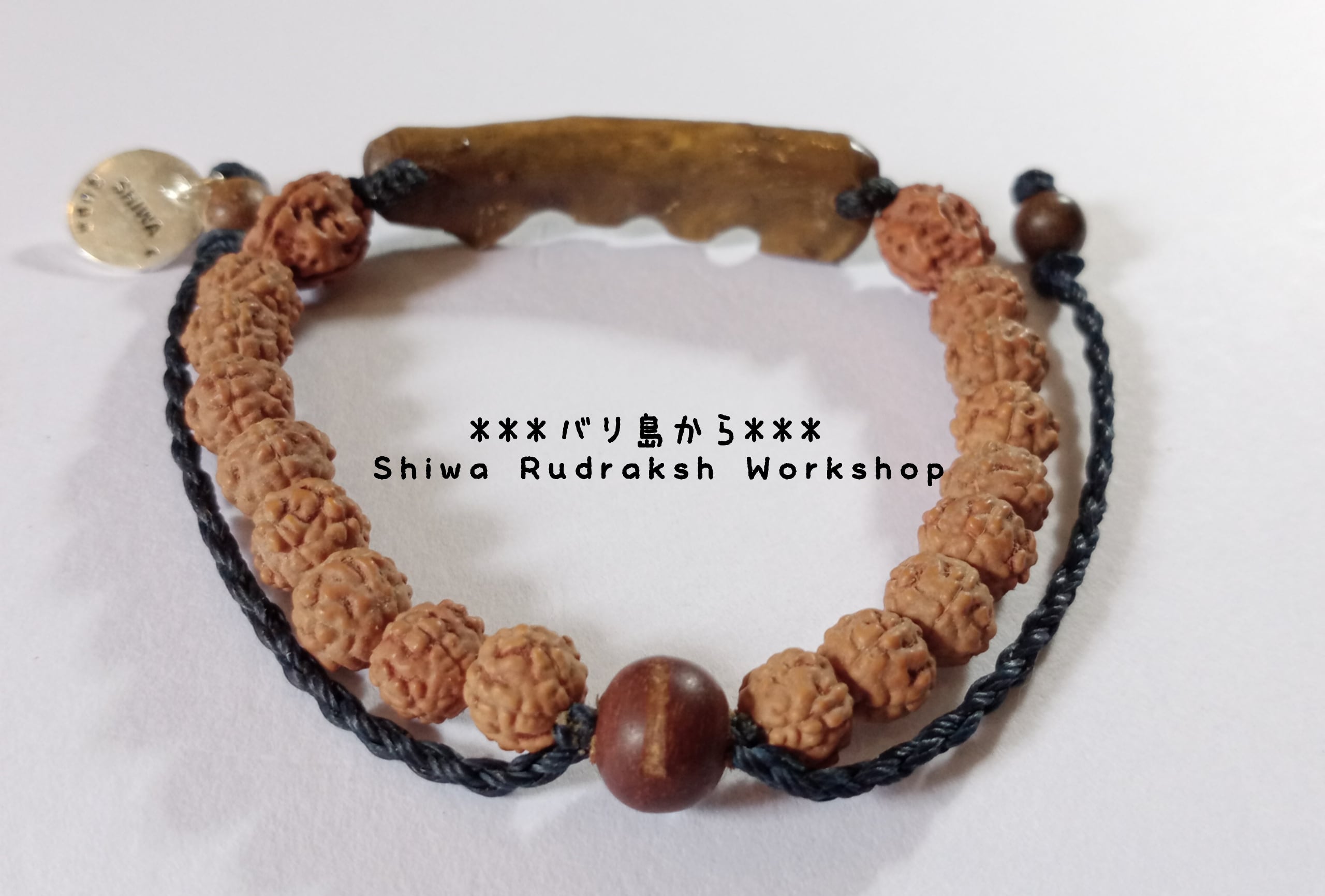 ルドラクシャは「ヒンドゥー三大神」が内在すると言われる「3面アグニ」を「グリーンウリ・インドネシア産」の左右に組み入れ、それ以外はルドラクシャ5面です。