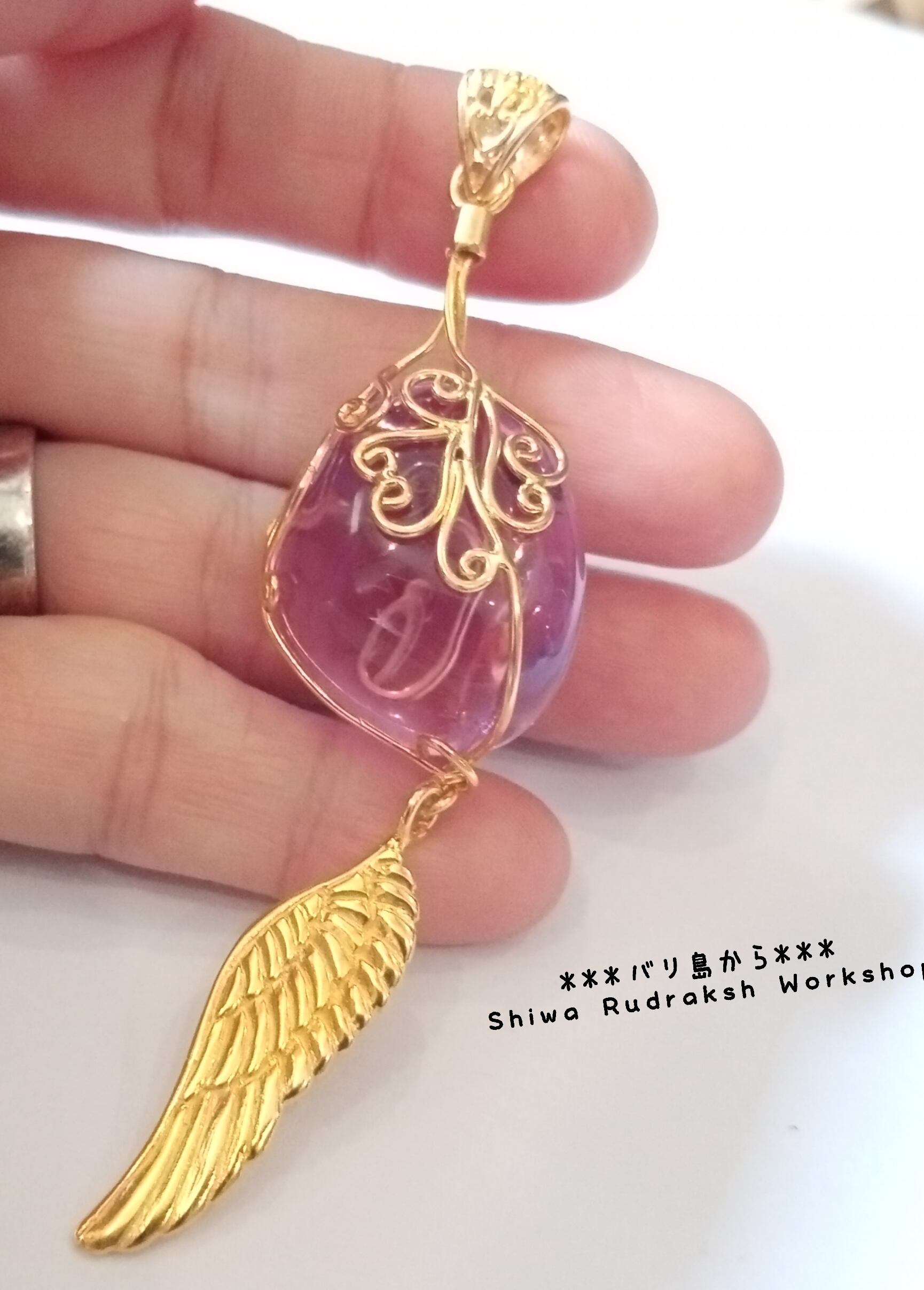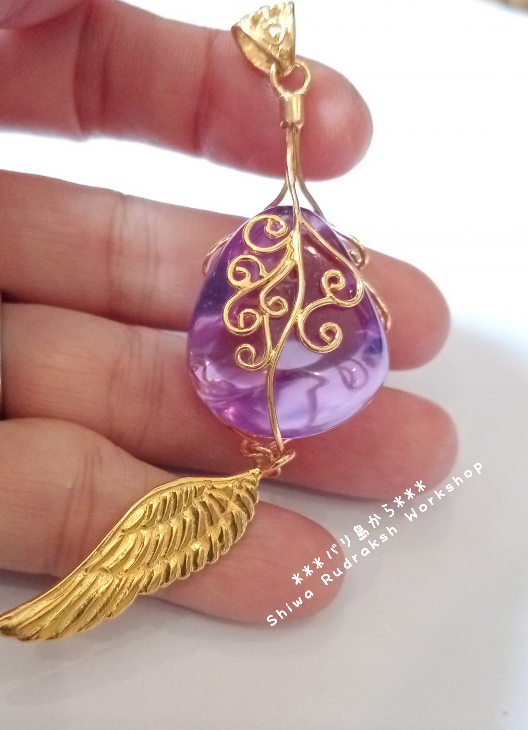 【アンダラクリスタル・インドネシア】ラベンダー★天使の羽ペンダントトップ