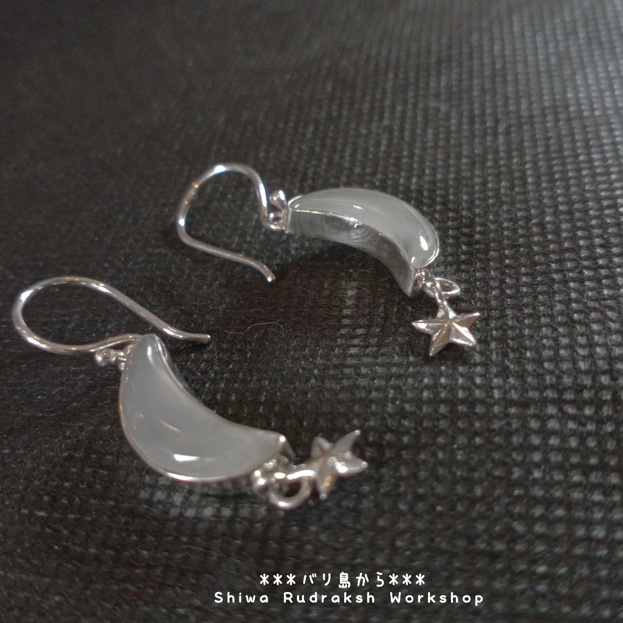 再入荷!【入魂儀式済ケオンカボション】ブラン(月)とビンタン(星)★シルバーピアス(F)