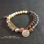 ★ルドラクシャ2面(約縦11mm)・ゴールドウリ&ホワイトサンゴ(約6mm)・グリーンウリ・インドネシア産(約20mm)・925シルバービーズ(約6mm)