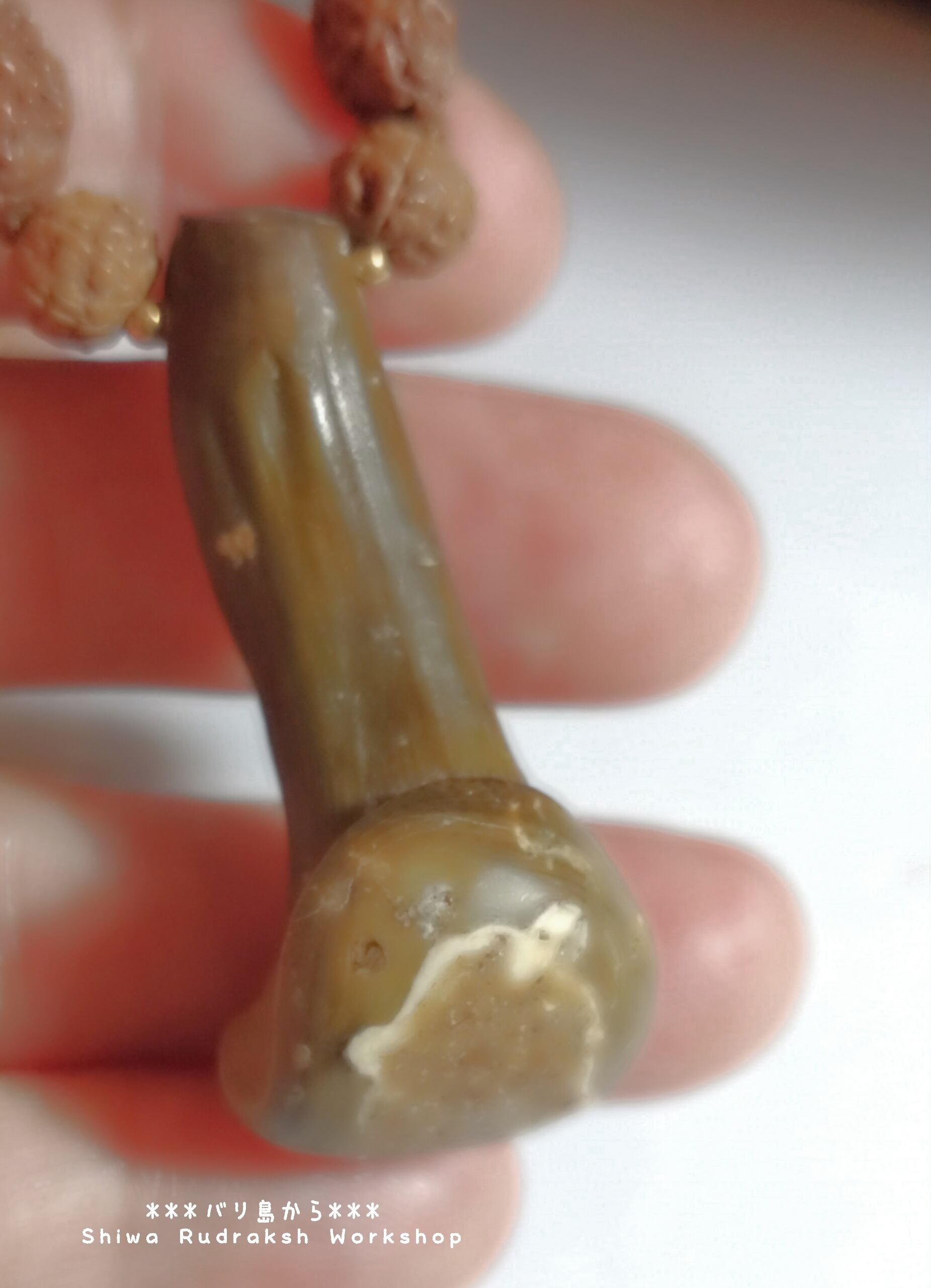 ルドラクシャは「2面(シヴァ&パールヴァティ)」と「7面(ラクシュミー女神)」を「グリーンウリ・インドネシア産」の左右に組み入れ、それ以外は極小のルドラクシャ5面です。