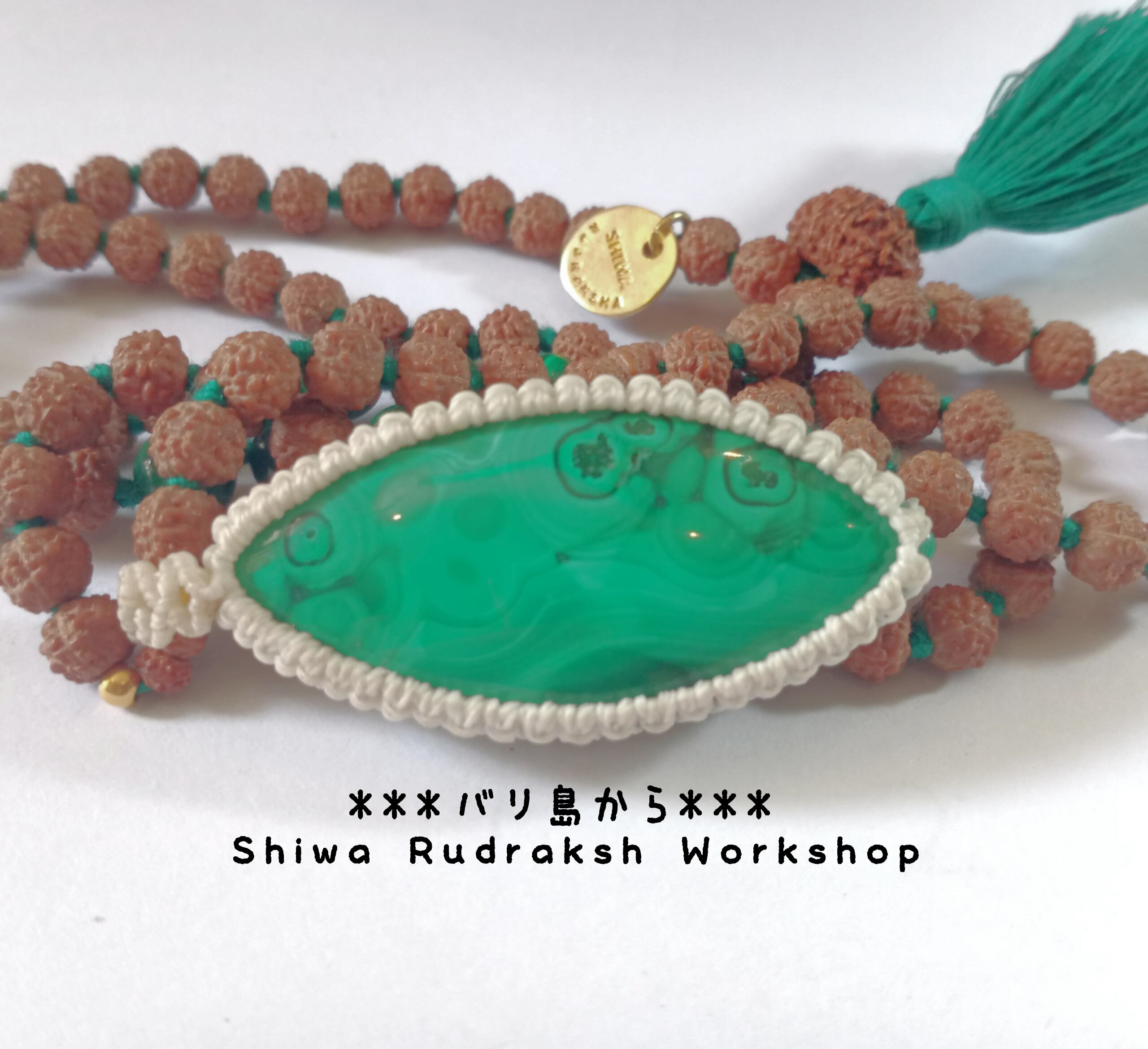 ★ルドラクシャ5面(約6mm)・ルドラクシャ10面(約15mm) ・マラカイト(約7mm)・マラカイト原石ペンダントトップ(約50mm×約25mm)