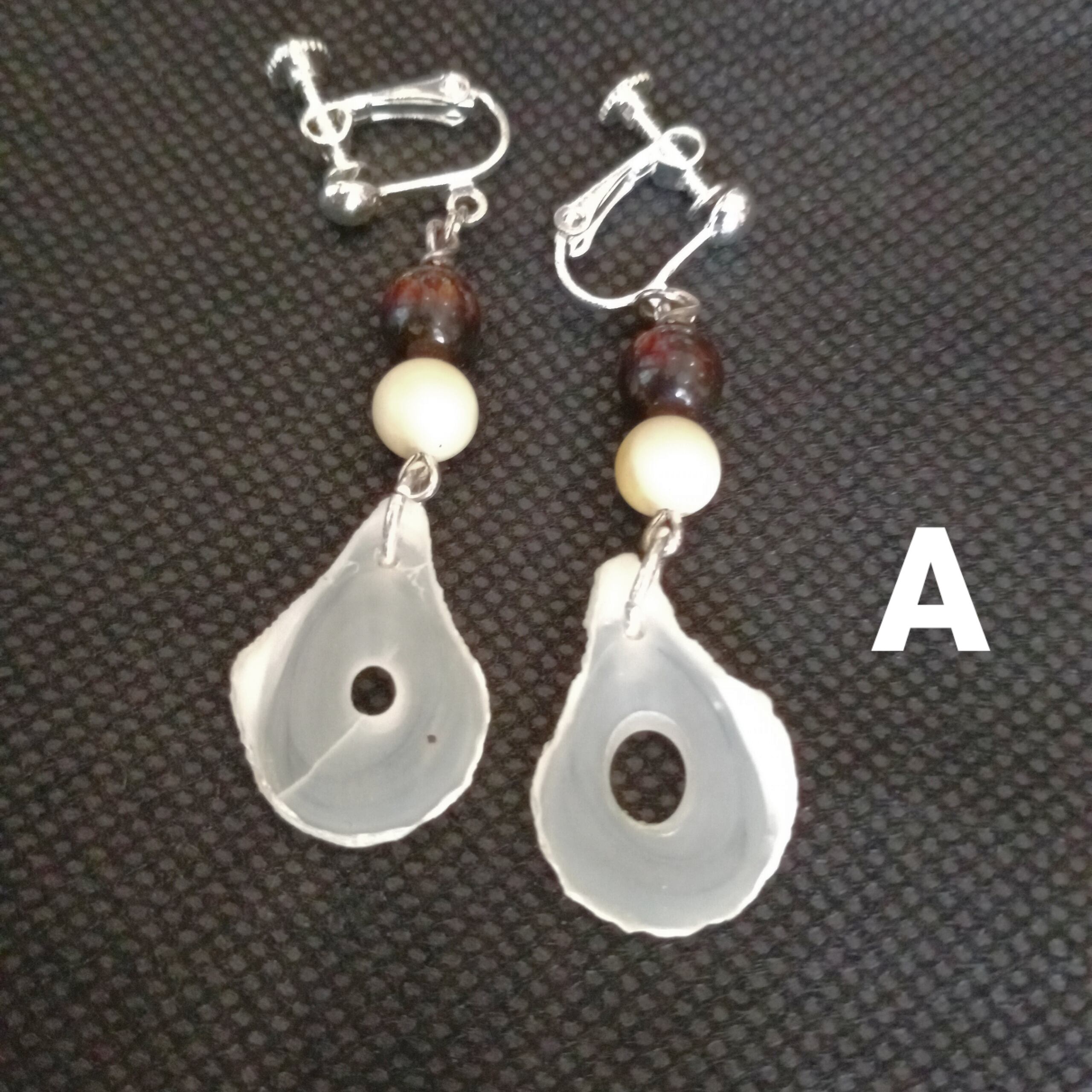 「ケオン」の茎部分をスライスにして、穴あけ加工を職人さんに頼み製作したイヤリングです。