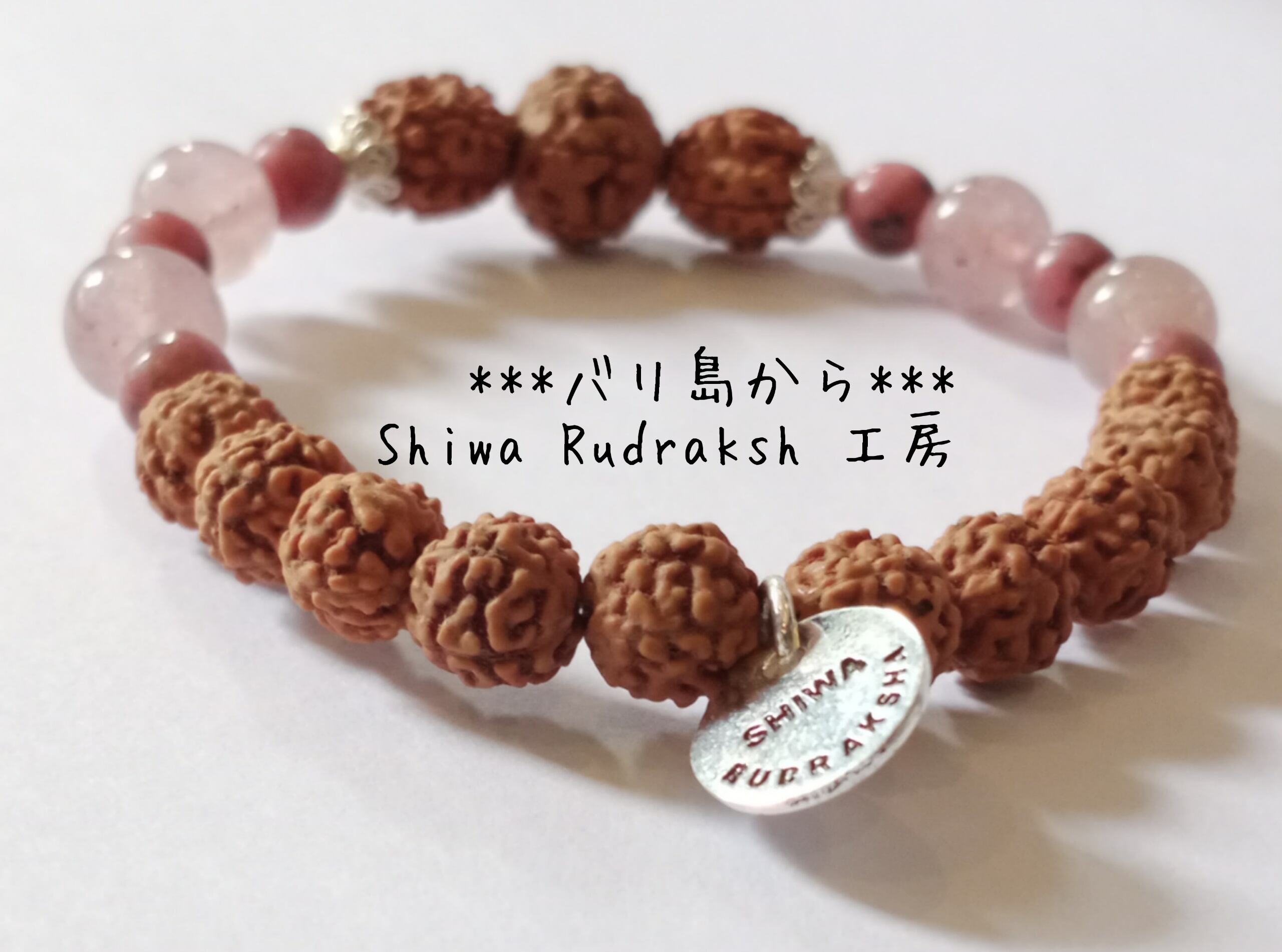 ★ルドラクシャ5面(約7mm)・ルドラクシャ7面(約11mm)・ルドラクシャ4面(約縦10mm)・ストロベリークウォーツ(約8mm)・高品質ロードナイト(約6mm)・シルバー925パーツ(直径約6mm)
