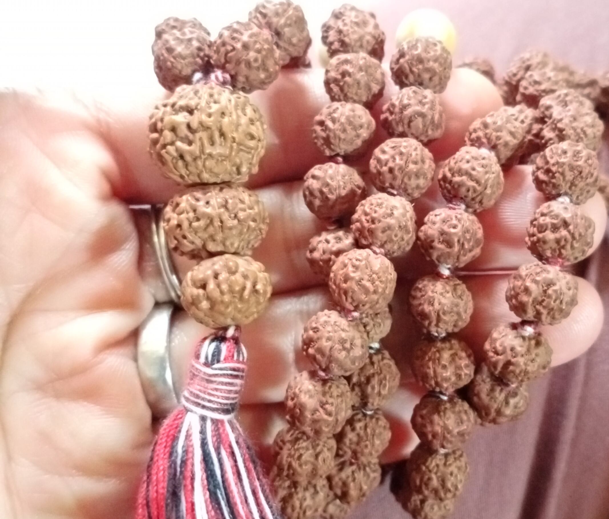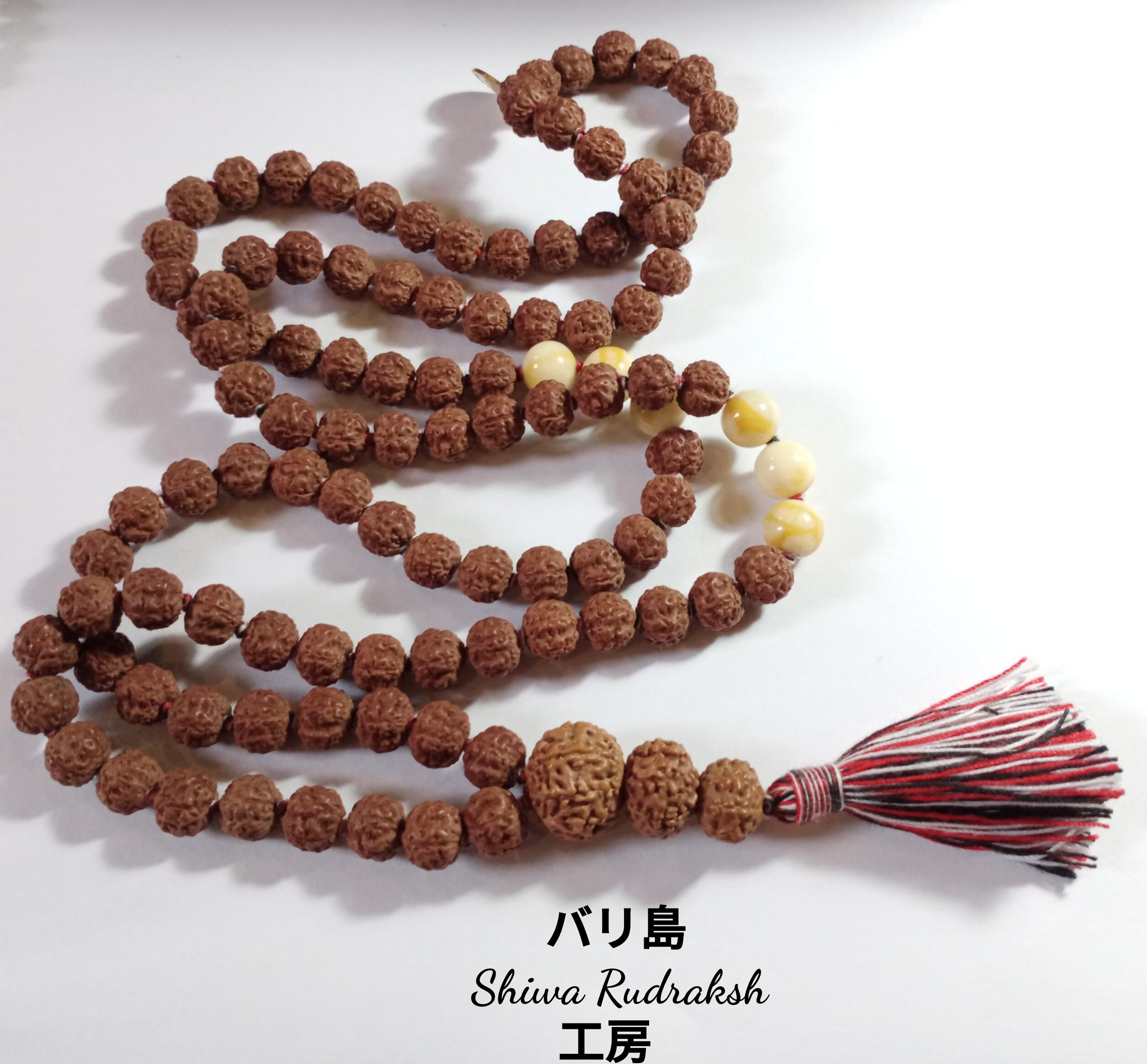 数珠部分は、マントラを唱えるのにお薦めの9mm5面ルドラクシャです。