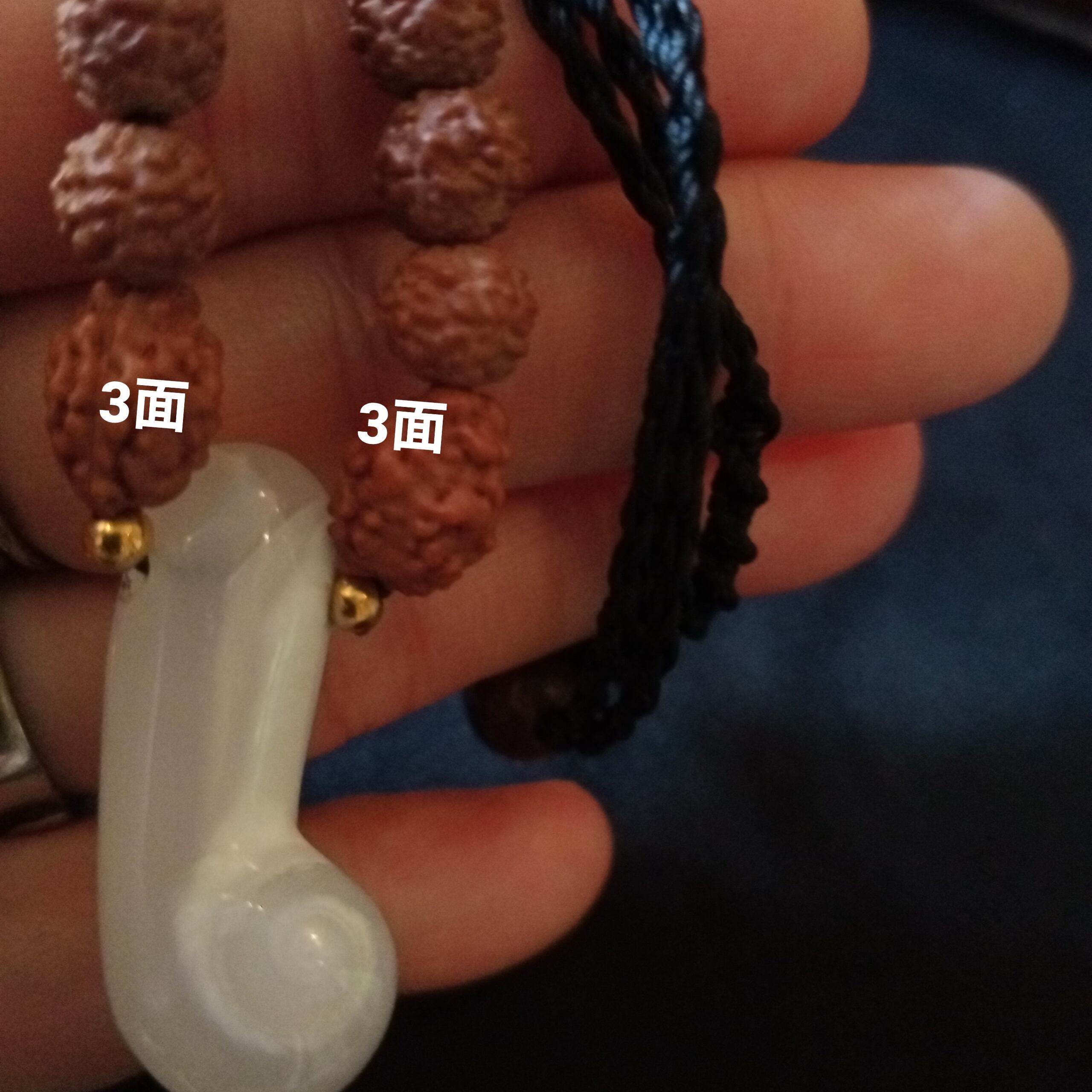 ルドラクシャは「ヒンドゥー三大神が内在する」と言われる「3面アグニ神」を「ケオン」の左右横に入れました。(それ以外は5面ルドラです。)