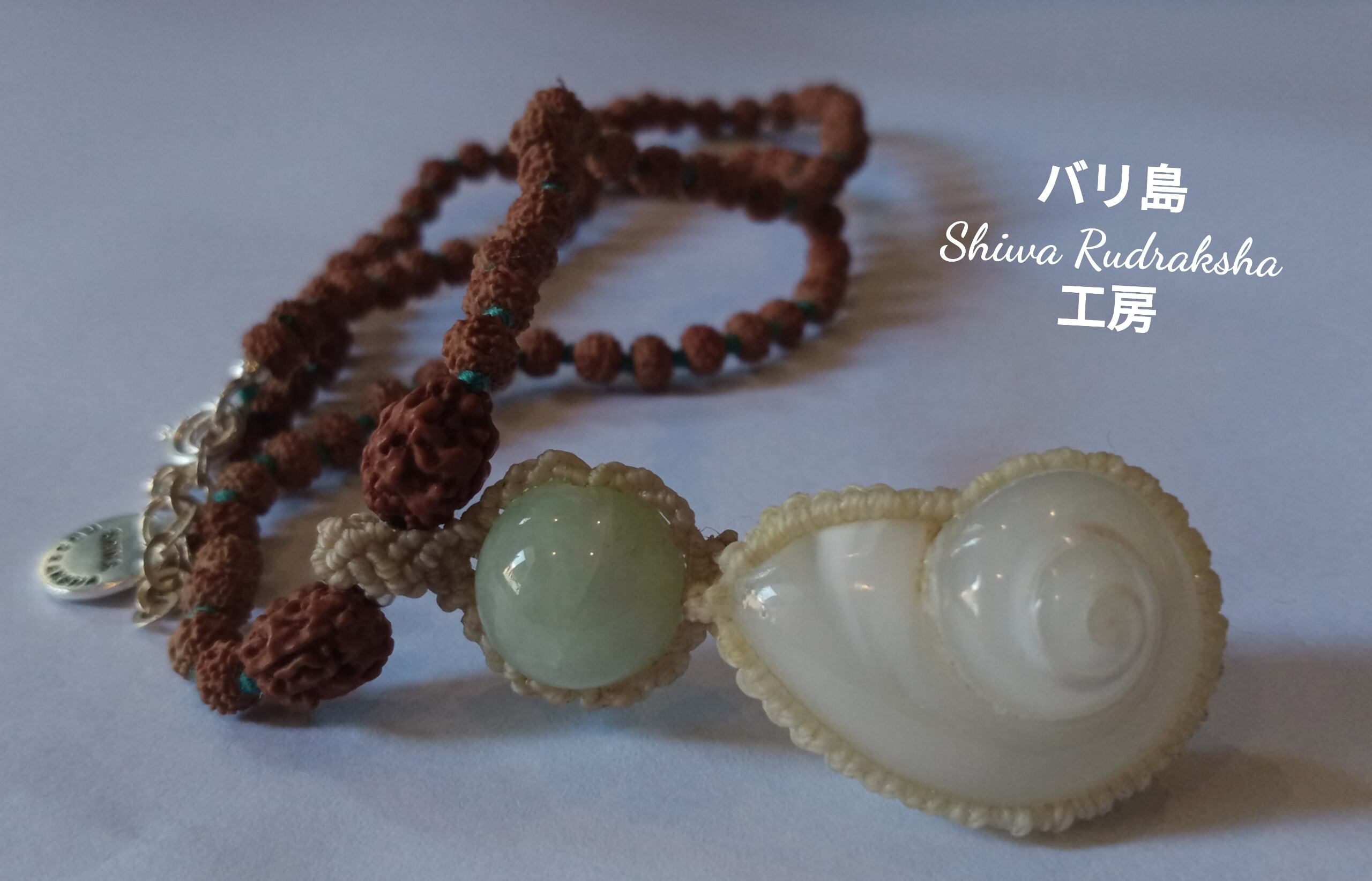 ルドラクシャは「ヒンドゥー三大神が内在する」と言われる「3面アグニ神」を「ケオン」の左右横に入れました。(それ以外は極小5面ルドラです。)