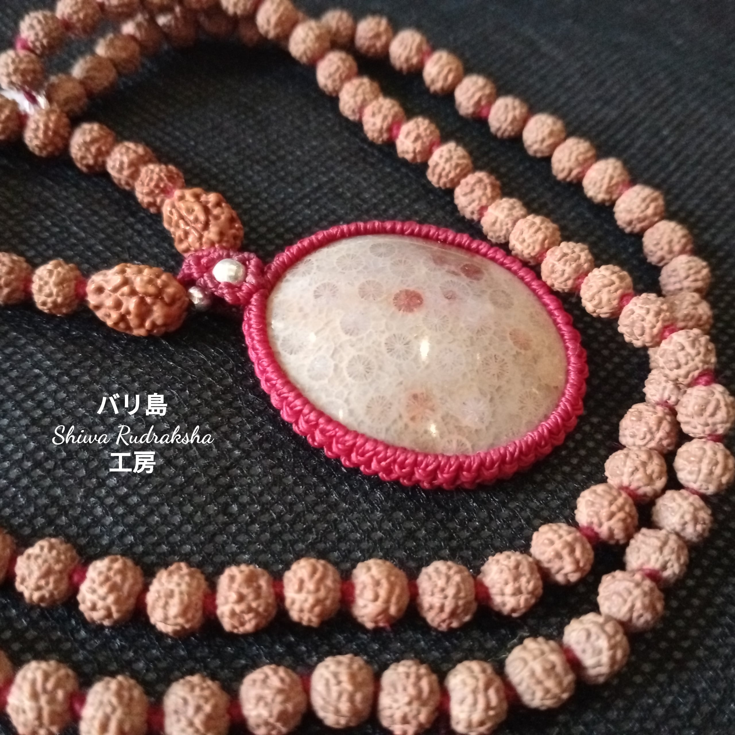 インドネシア産「フォッシルコーラル」と、小粒ルドラクシャだけのシンプルなマーラーです。(^_^)