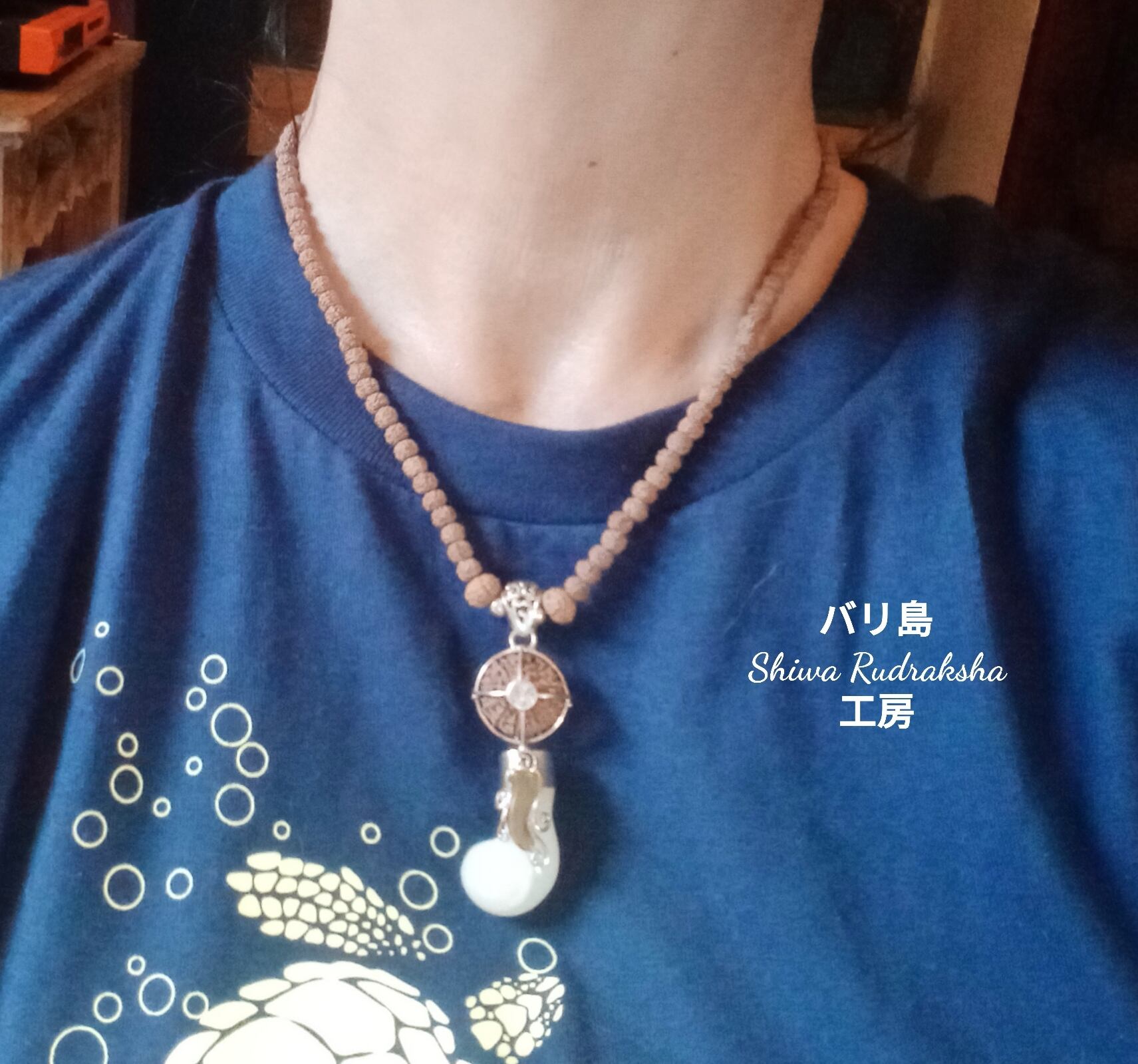 シルバー職人さんに特注で作ってもらった新作の『ケオン』のペンダントトップをメインにした小粒ルドラクシャ5面使用のネックレスです。