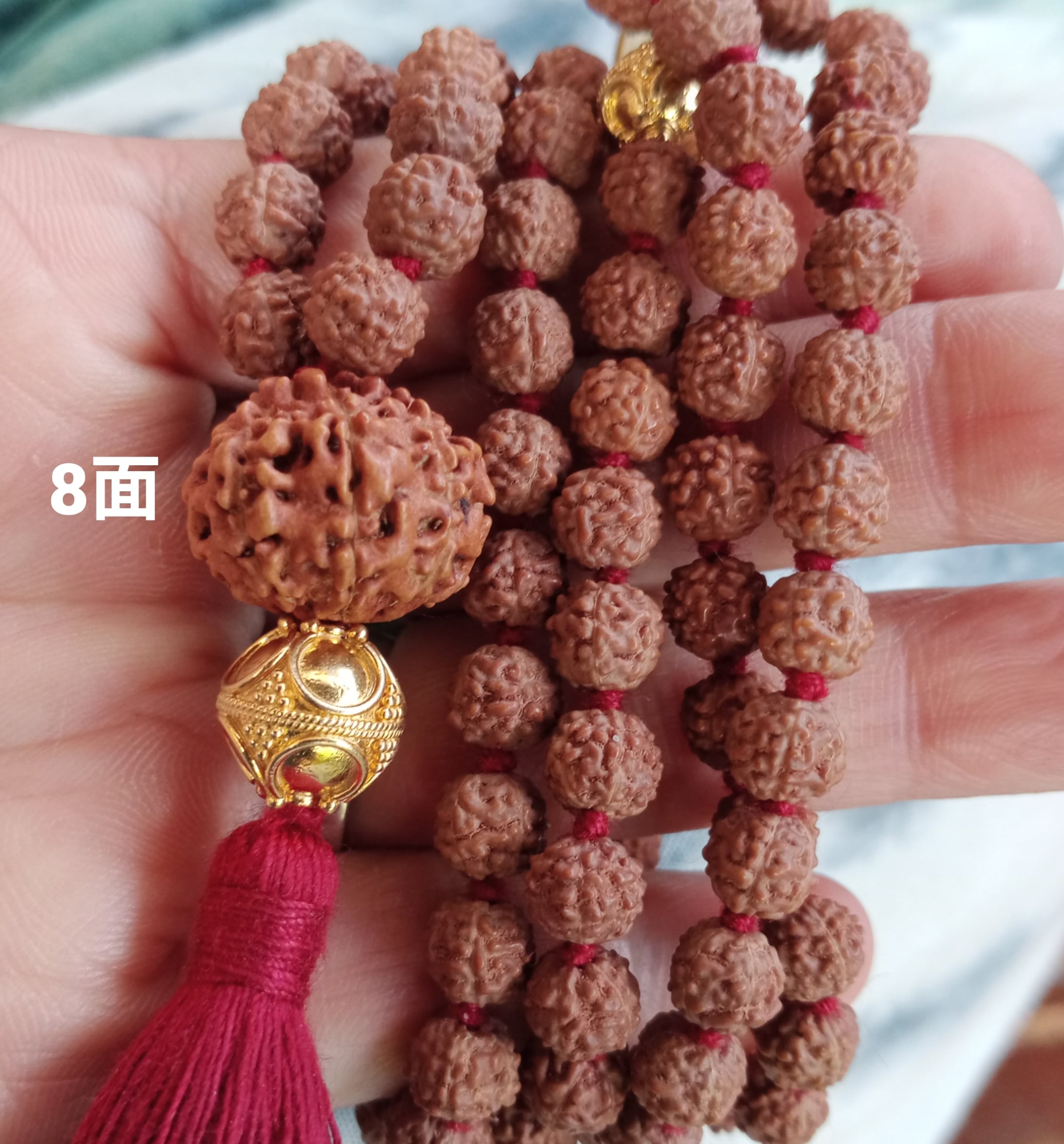 グルビーズに、「障害除去・健康」の8面ルドラクシャ(ガネーシャ)とガムランボールのようなロンデルを組み入れた108粒マーラーです。