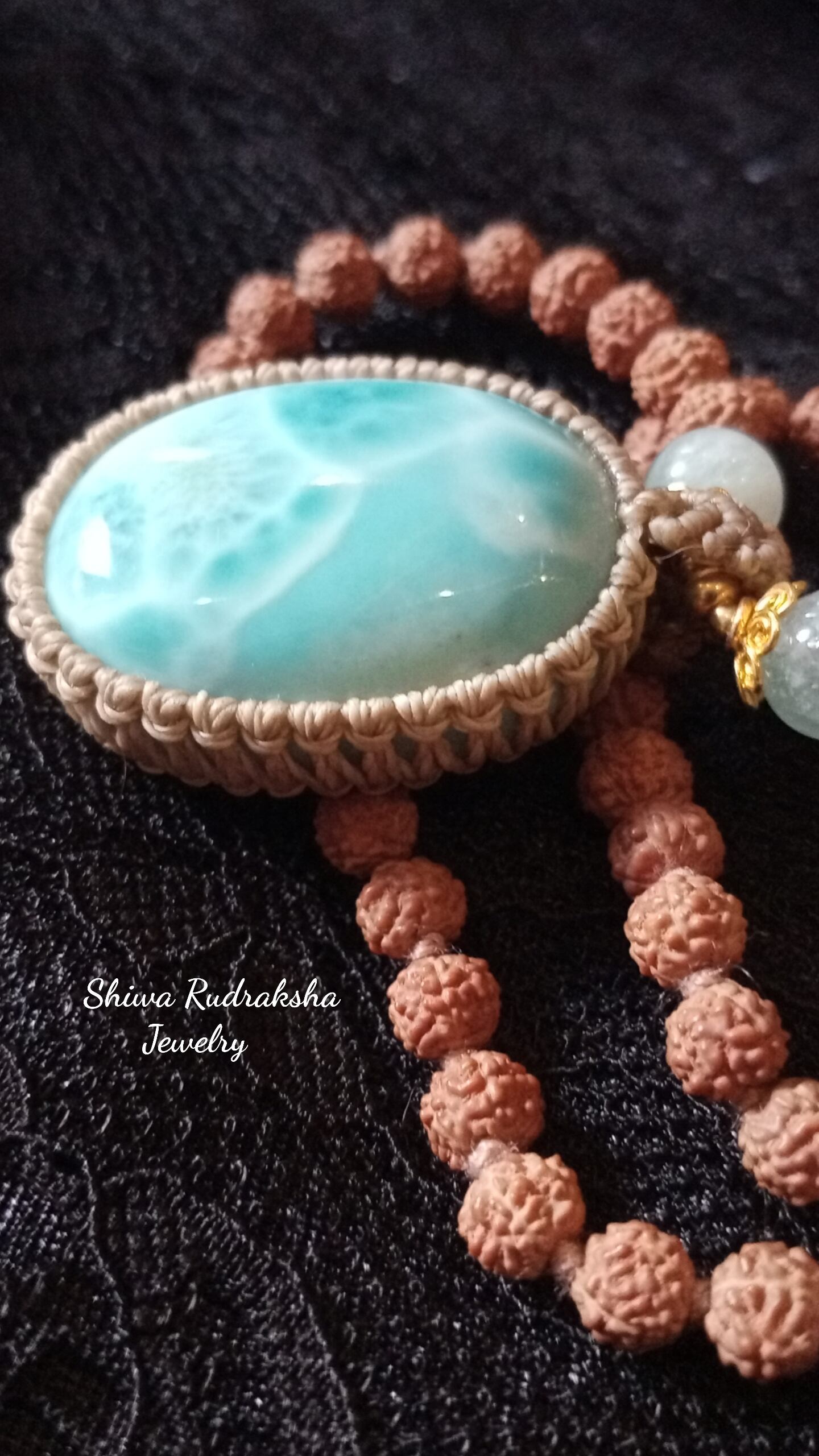 ★ルドラクシャ5面(約6mm)・アクアマリン(約8mm)・ラリマー(約35mm×約25mm×約12mm)