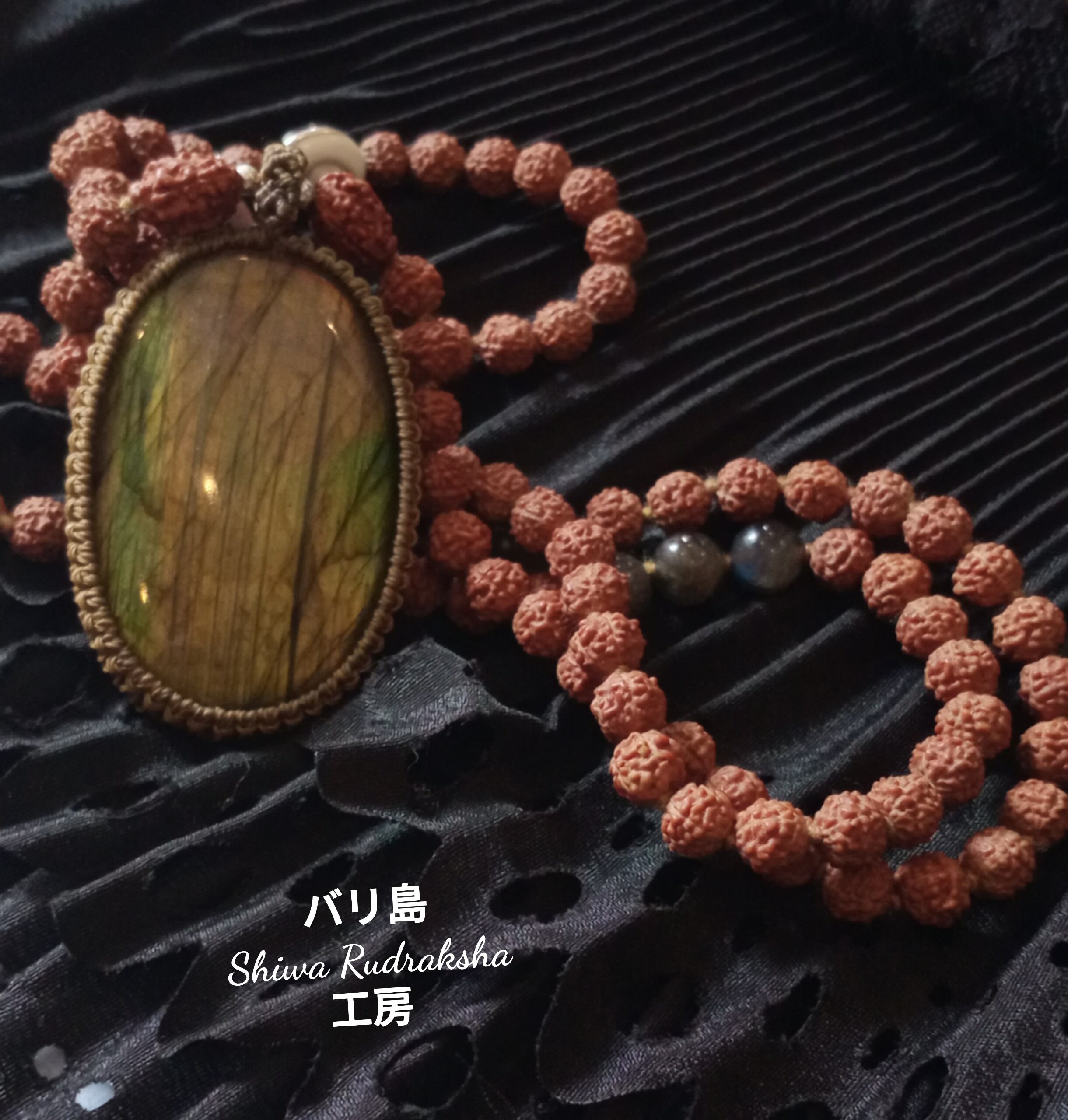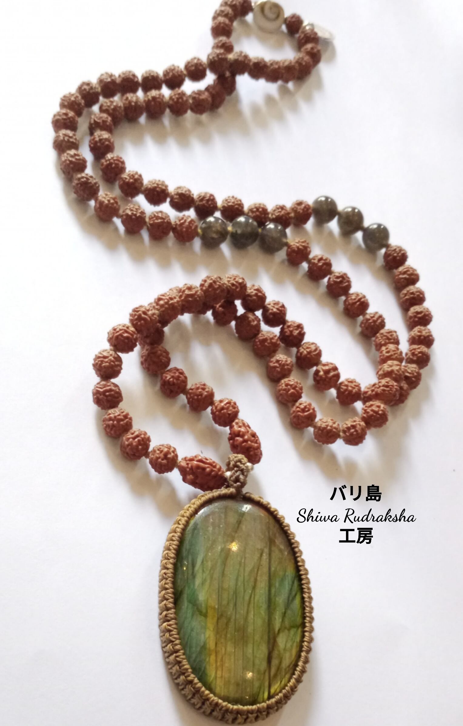 ★ルドラクシャ5面(約7mm)・ルドラクシャ3面(約縦12mm)★ラブラドライト(約53mm×約35)