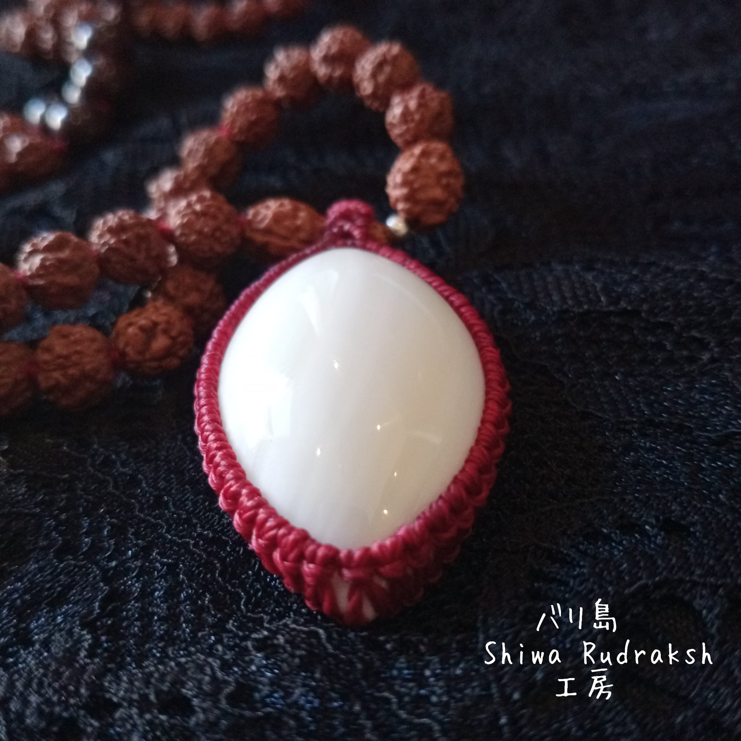 『Gumpalan Cairan Keong』と呼ばれる、超レアな「ケオン」の原石をドロップ型に研磨して、マクラメ加工ペンダントトップの108粒マーラーに製作いたしました。