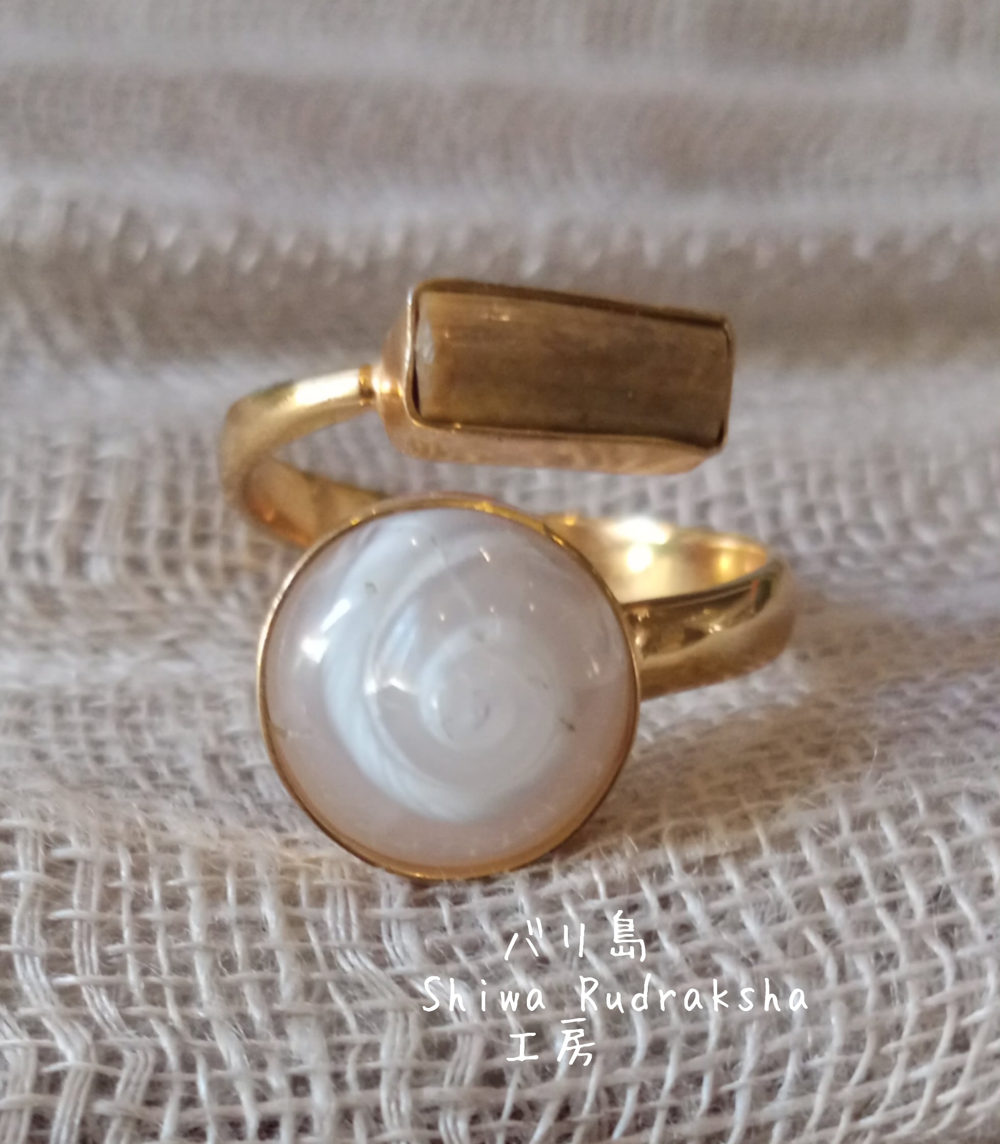サイズ調整可能な「ケオン」と「グリーンウリ・ニュージーランド産」のリングです。