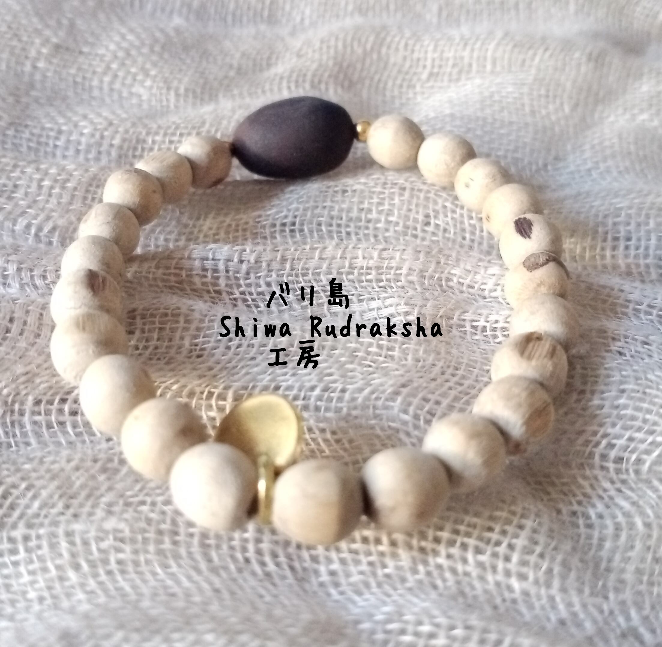 インド産「トゥルシーウッドビーズ」(種ではなく木のビーズです。)と、「ロータスの種」のシンプルブレスレットです。