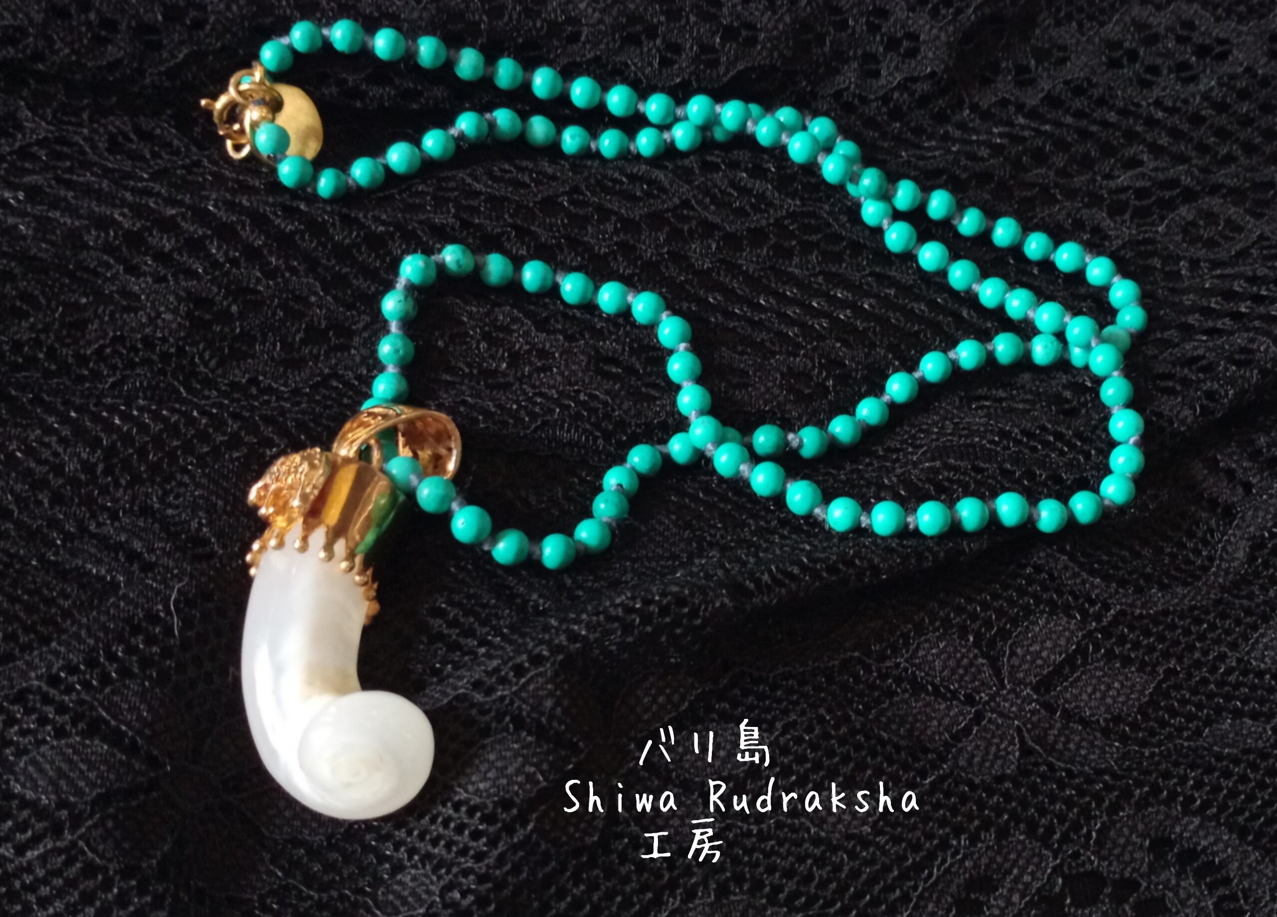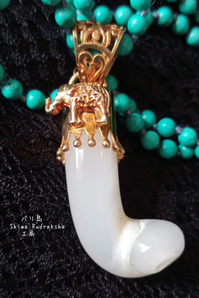 『ケオン』に「ガジャ(象)さん」を装飾したペンダントトップと、「ターコイズ(練り物と思われます。)」のネックレスです。