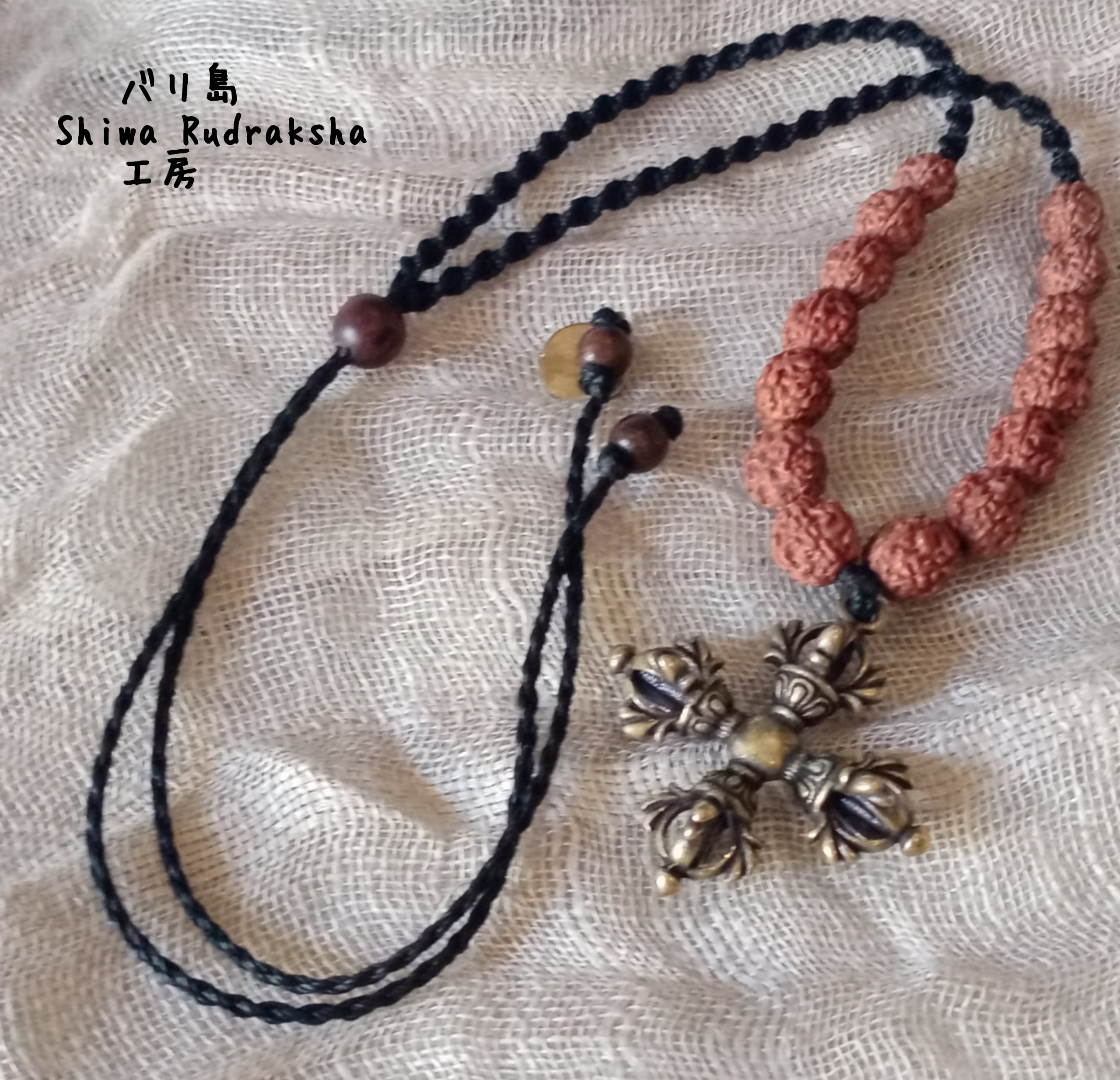★ルドラクシャ5面(約7mm~9mm)・ダブルドージェ:約37mm×約37mm(約12g真鍮)・ガハル(沈香)ビーズ(約6mm&8mm)