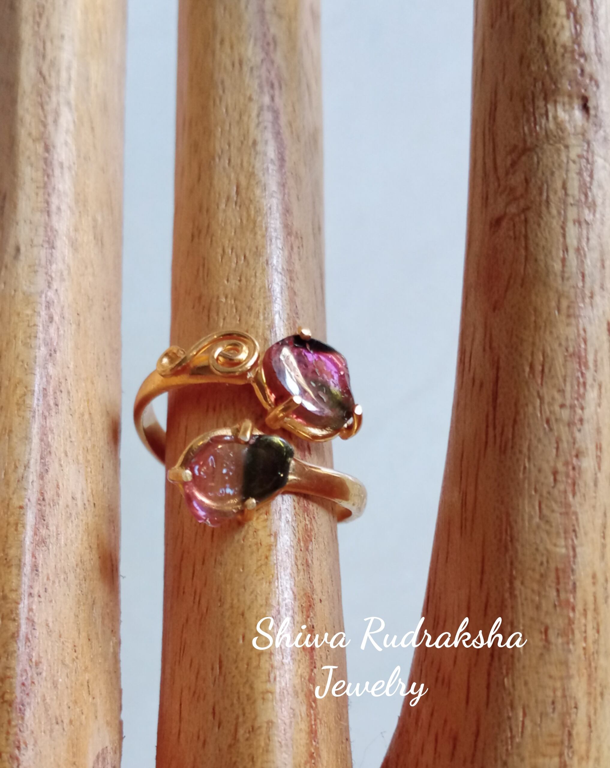 スライスカットした『ウォーターメロントルマリン』をダブルで使用したリングを