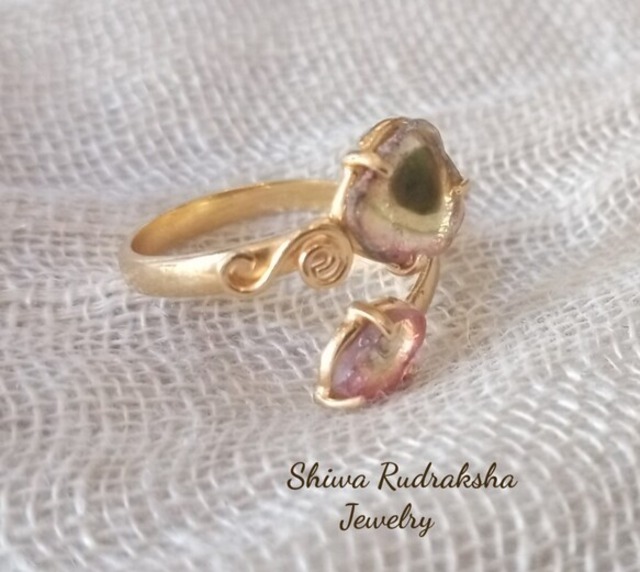 スライスカットした『ウォーターメロントルマリン』をダブルで使用したリングを