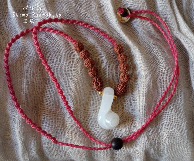ルドラクシャは「ヒンドゥー三大神が内在する」と言われる「3面アグニ神」を「ケオン」の左右横に入れました。(それ以外は5面ルドラです。)