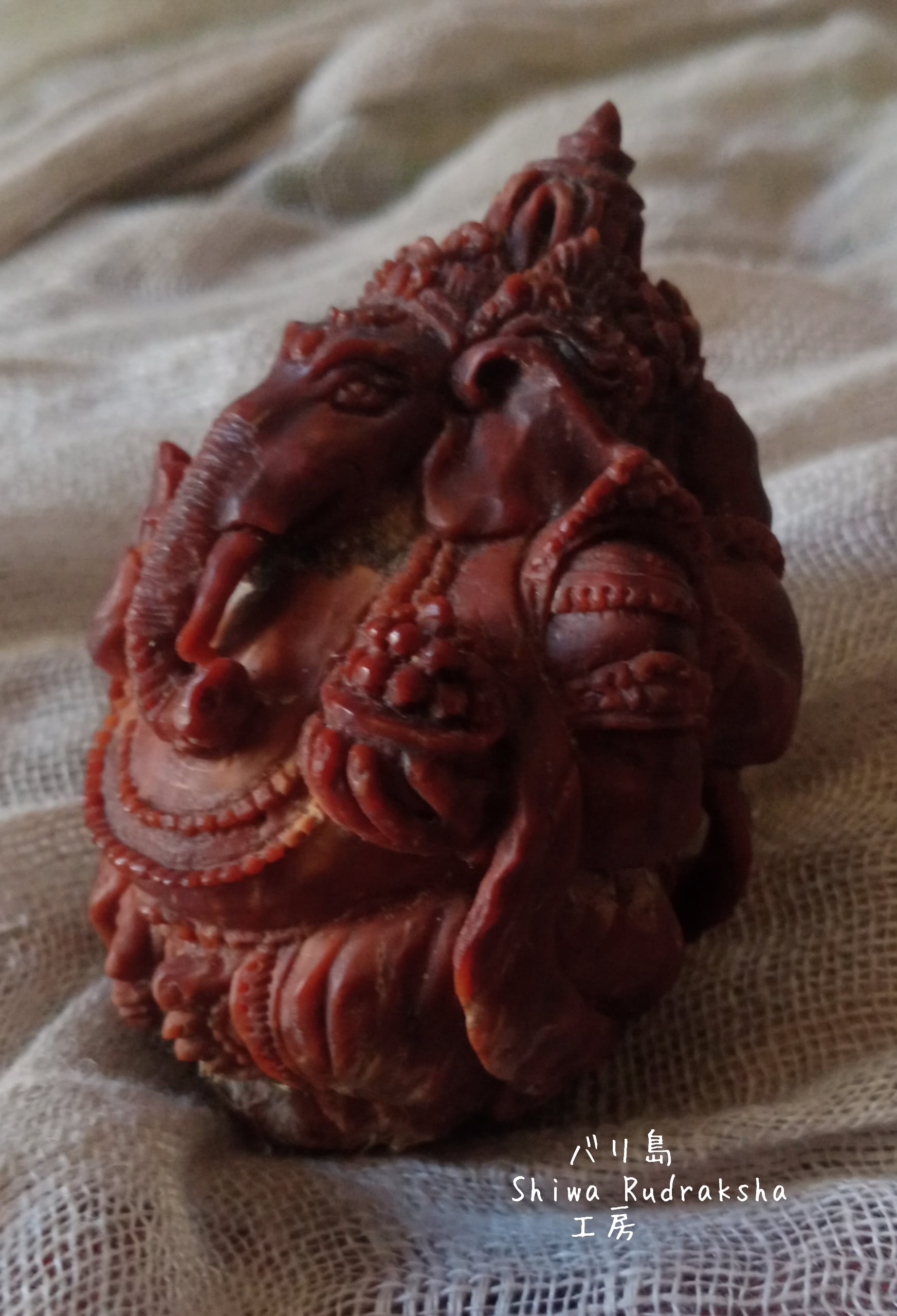 『カウカ』と呼ばれる神聖な木の種に彫刻をしたガネーシャ像です。