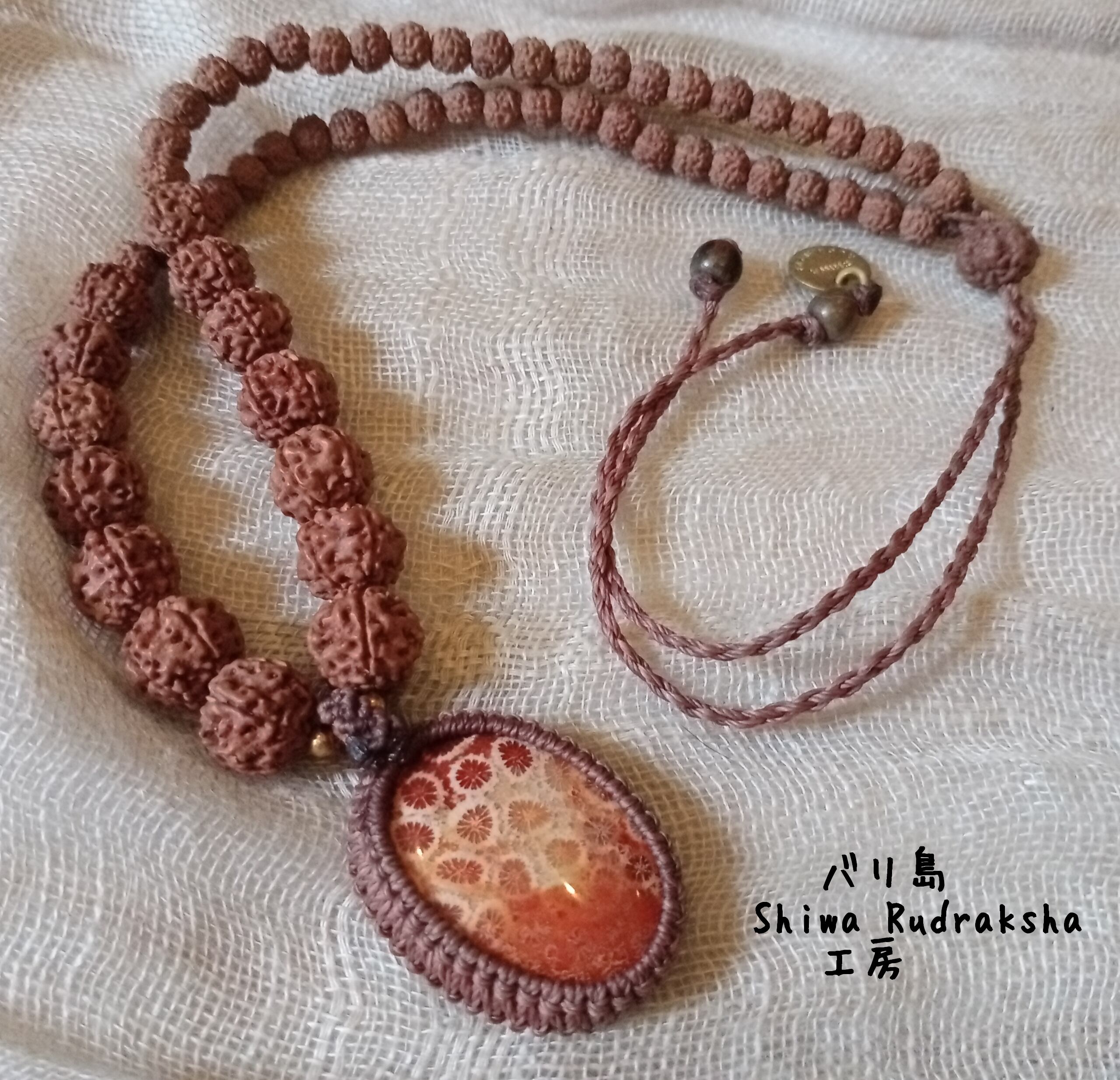 ★ルドラクシャ5面(約6mm~約12mm)・フォッシルコーラル(約38mm×約37mm)