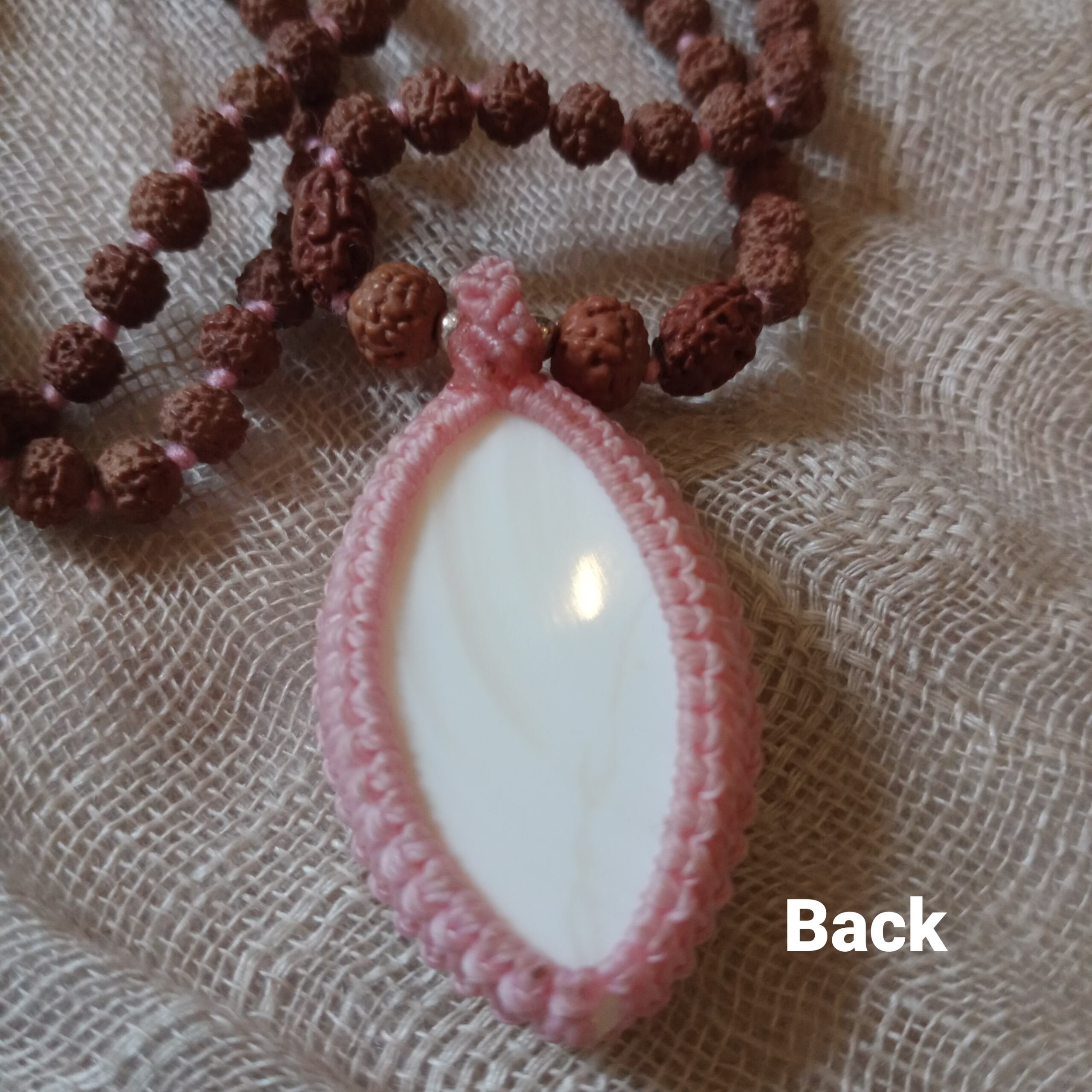 『Gumpalan Cairan Keong』と呼ばれる、超レアな「ケオン」の原石をマーキス型に研磨して、マクラメ加工ペンダントトップの108粒マーラーに製作いたしました。