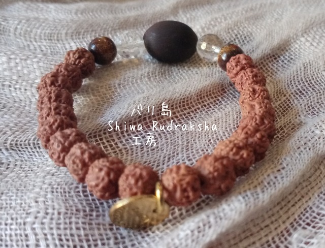 ★ルドラクシャ5面(約8mm)・カッティングクリスタル(約8mm)・ゴールドウリ(約7,5mm)・ロータスシード(約16mm×約13mm)