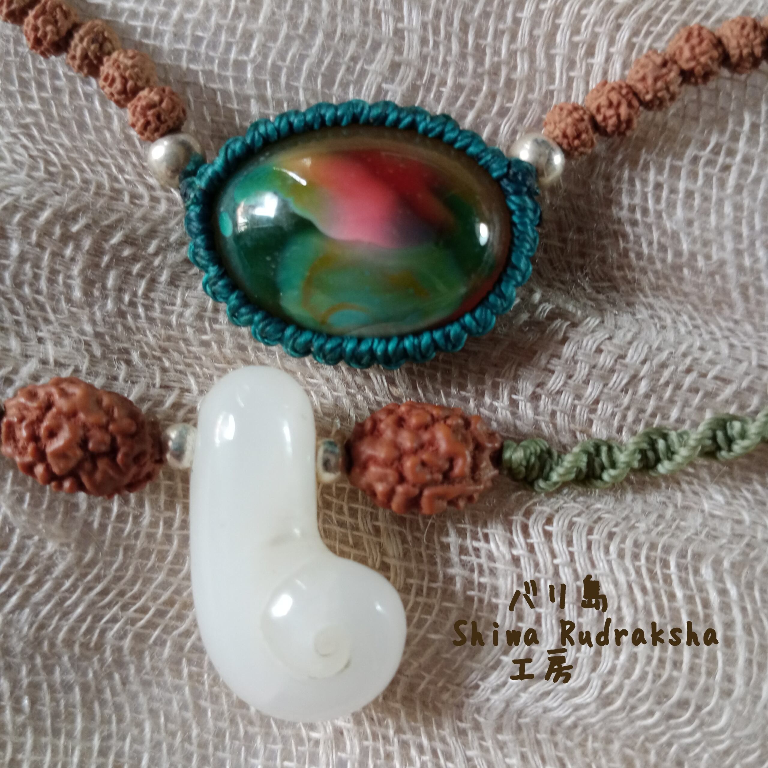 ルドラクシャは、『ケオン』の左右に『ヒンドゥー三大神が内在する』と言われる『3面ルドラクシャ(アグニ)』を組み入れました。