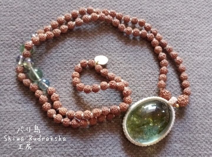 ★ルドラクシャ3面(約縦11mm)・ルドラクシャ5面(約6mm)・フローライト(約10mm)・アクアオーラ(約8mm)・オブシディアン(約42mm×約32mm)