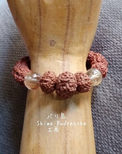 ★ルドラクシャ5面(約12mm)・ルドラクシャ8面(約14mm)・ルドラクシャ12面(約20mm)・ルドラクシャ7面(約13mm)・ルチルクウォーツ(約12mm)