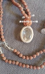 ★ルドラクシャ5面(約7mm)・ルドラクシャ2面(約縦11mm)・クリスタル水晶(約8mm)・鼻付きガネーシャ7面(約16mm)・クチュブンカラン(約32mm×約25mm)