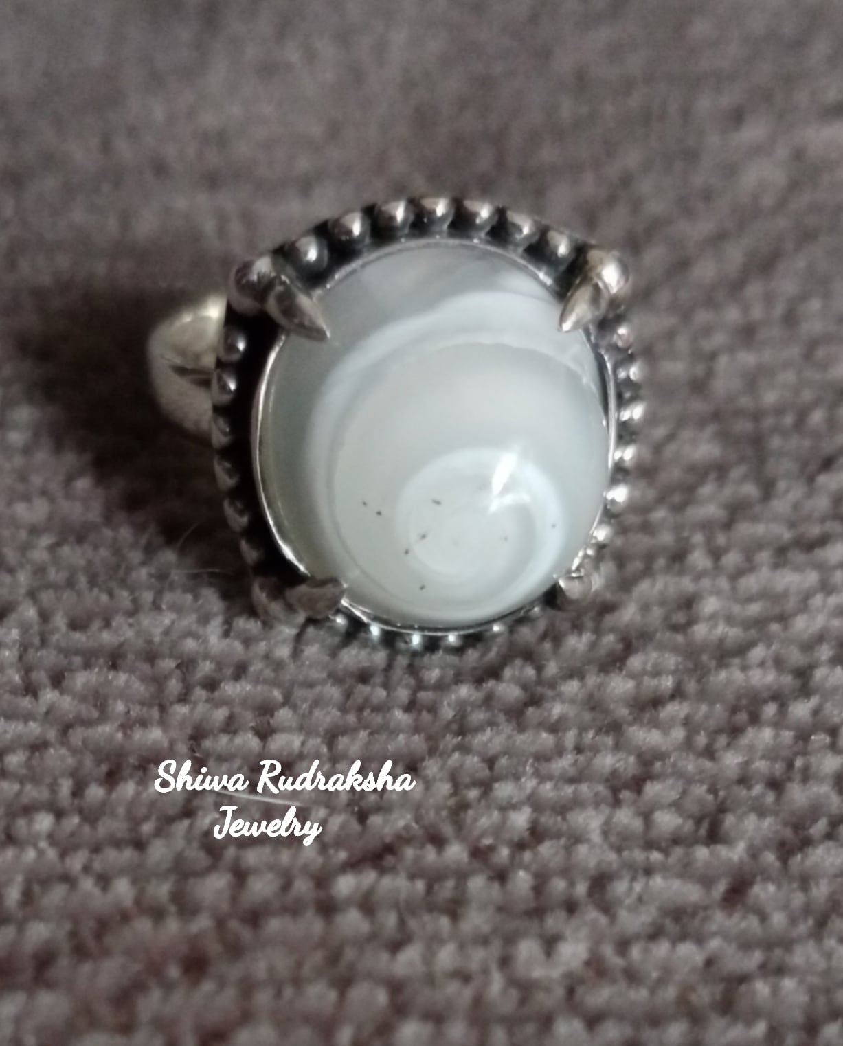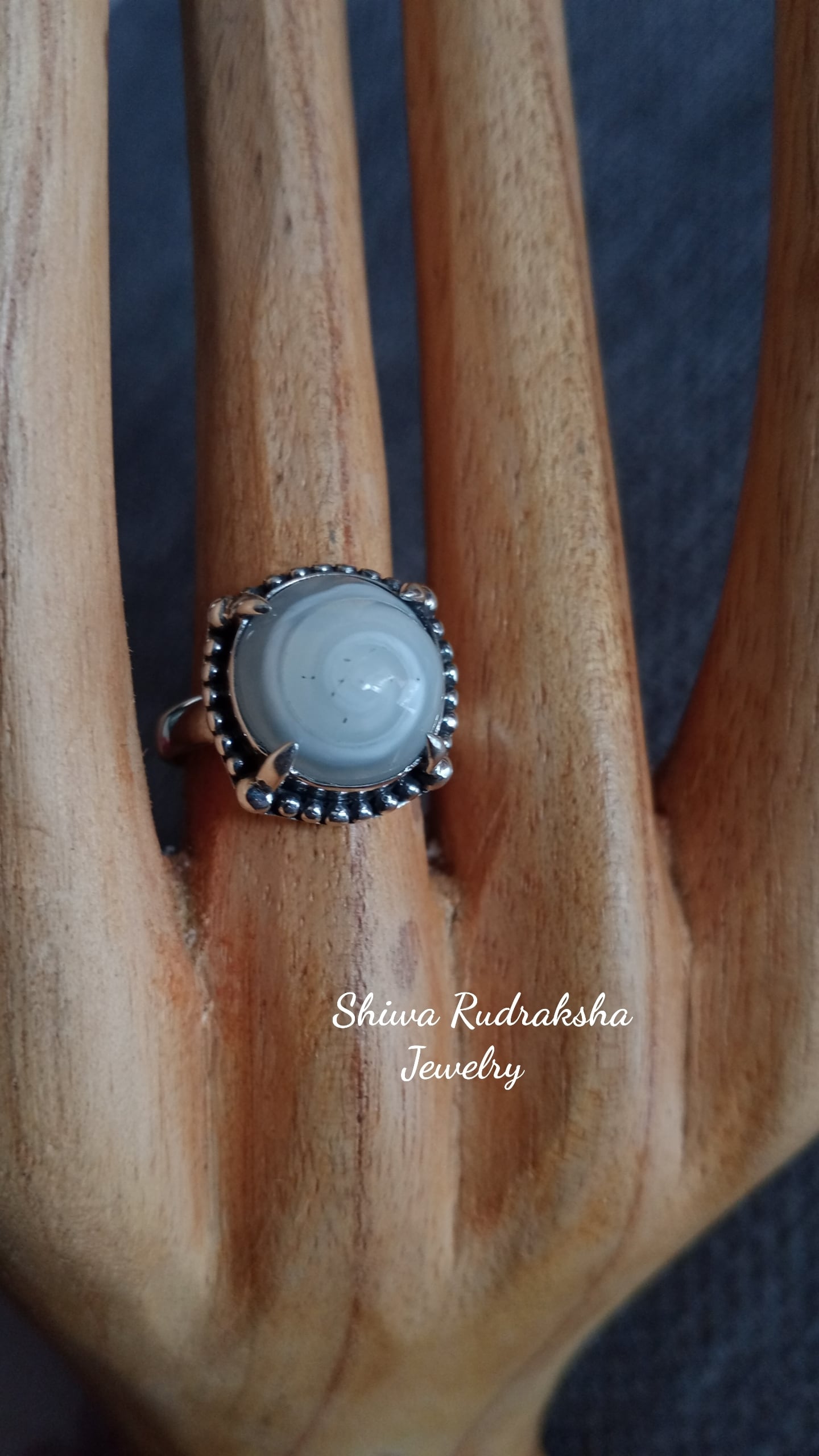 小さな「ケオン」の渦巻部分を縦爪リングにした、しっかりとした作りのサイズ調整可能なシルバー925リングです。