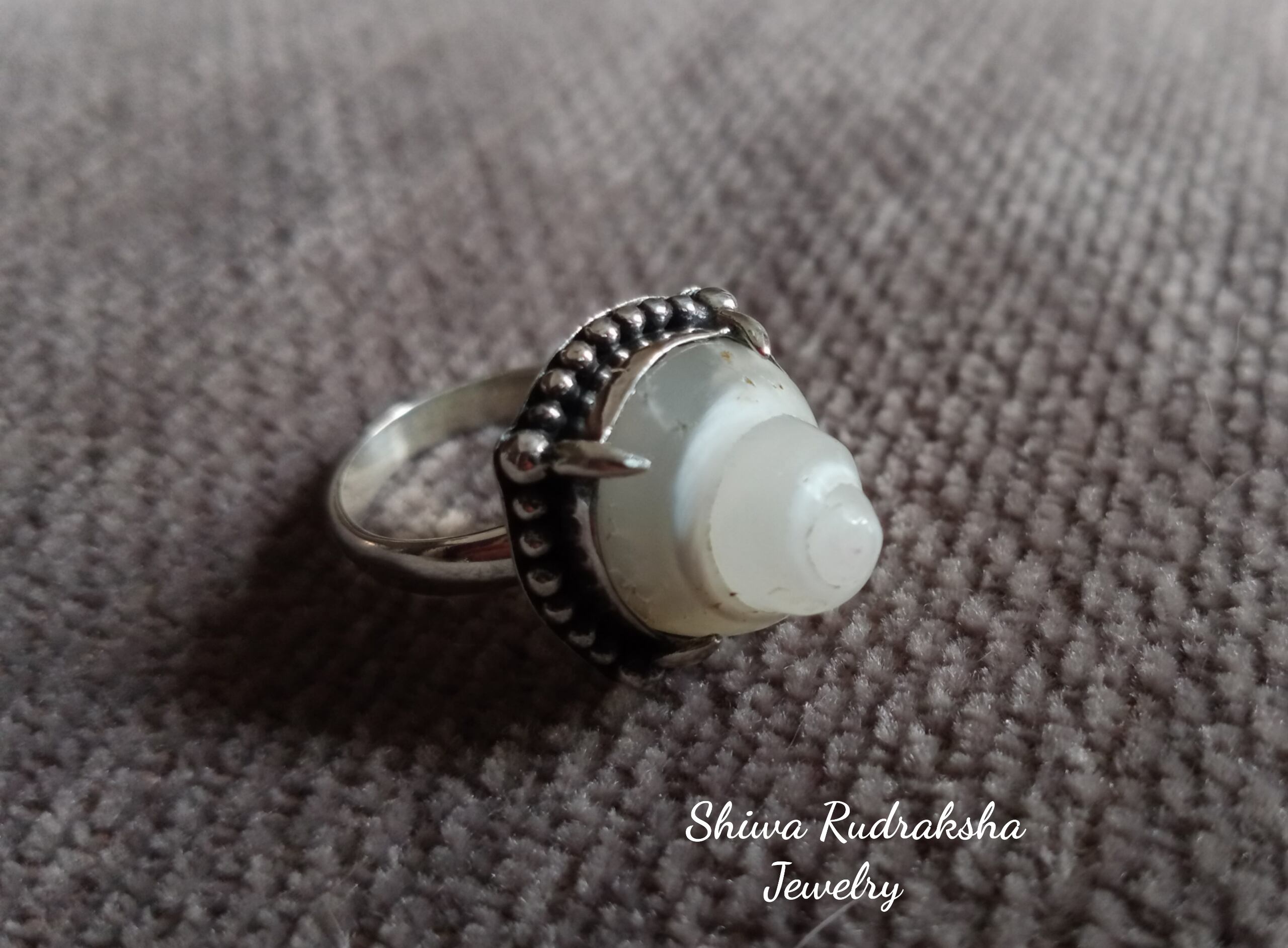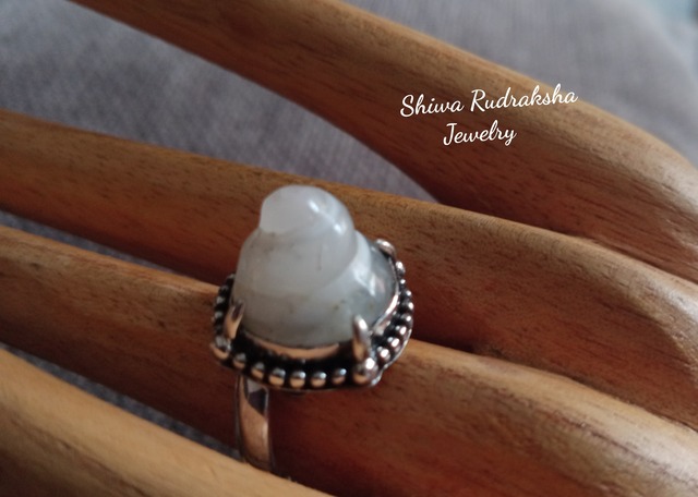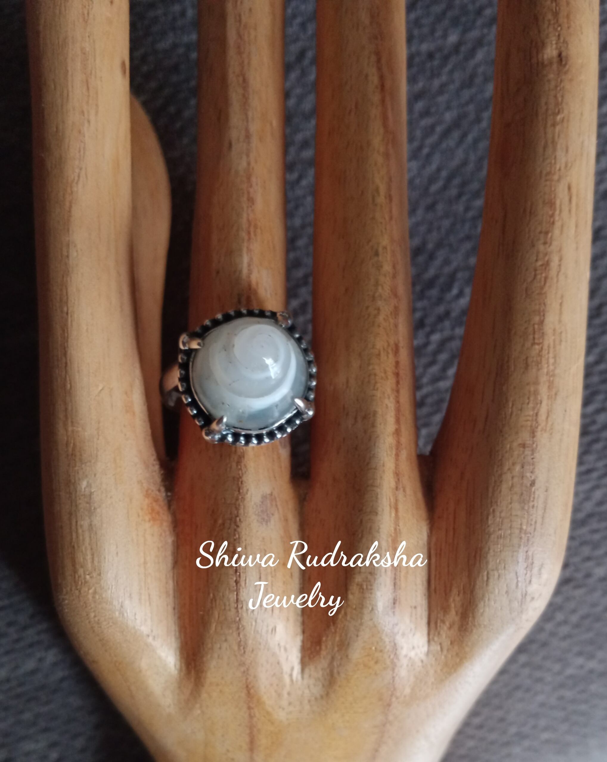 小さな「ケオン」の渦巻部分を縦爪リングにした、しっかりとした作りのサイズ調整可能なシルバー925リングです。