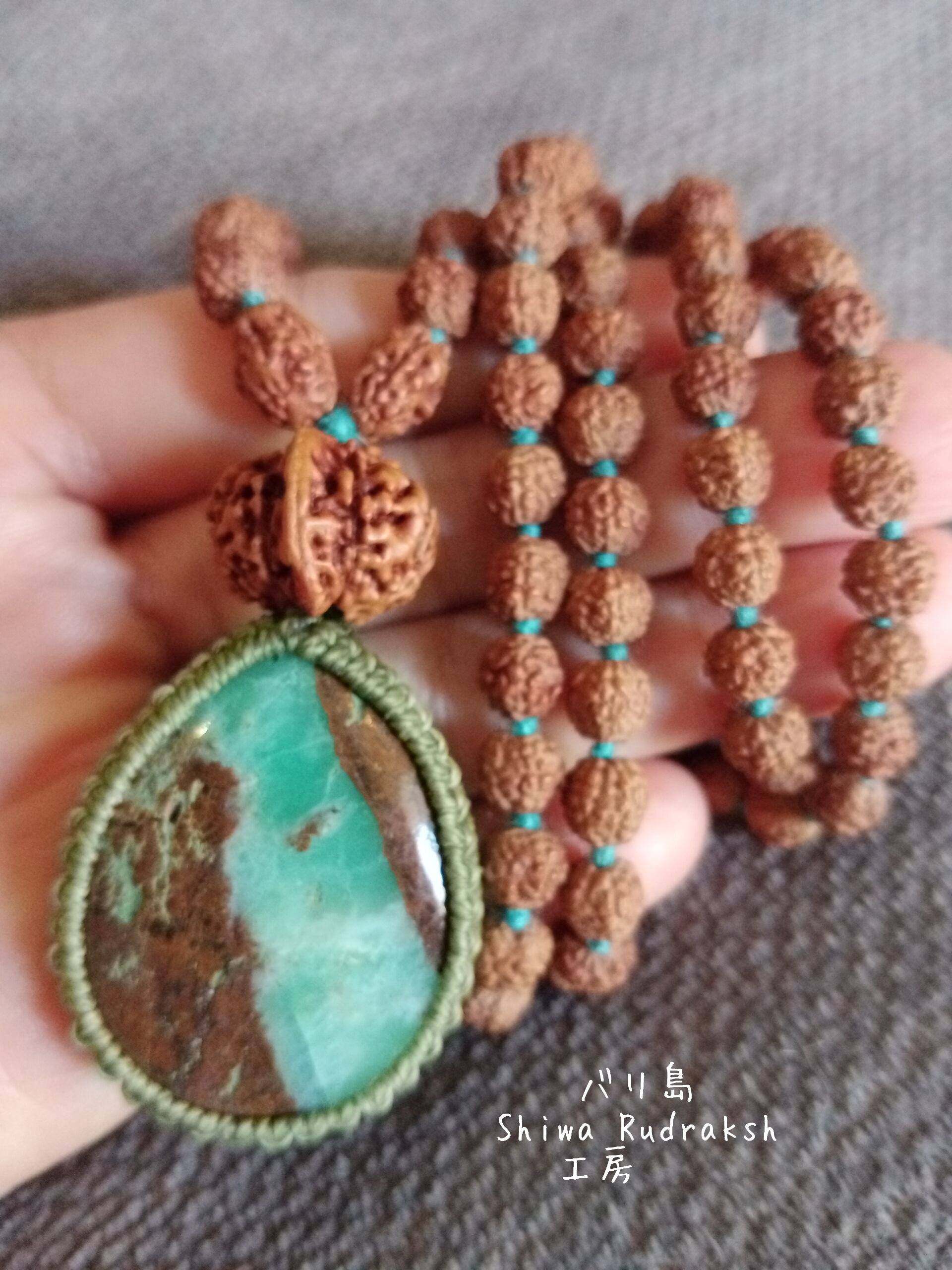 ★ルドラクシャ5面(約7mm)・ムーンストーン(約7mm)・鼻付きガネーシャ9面(約17mm)・クリソプレーズ(約37mm×約30mm)