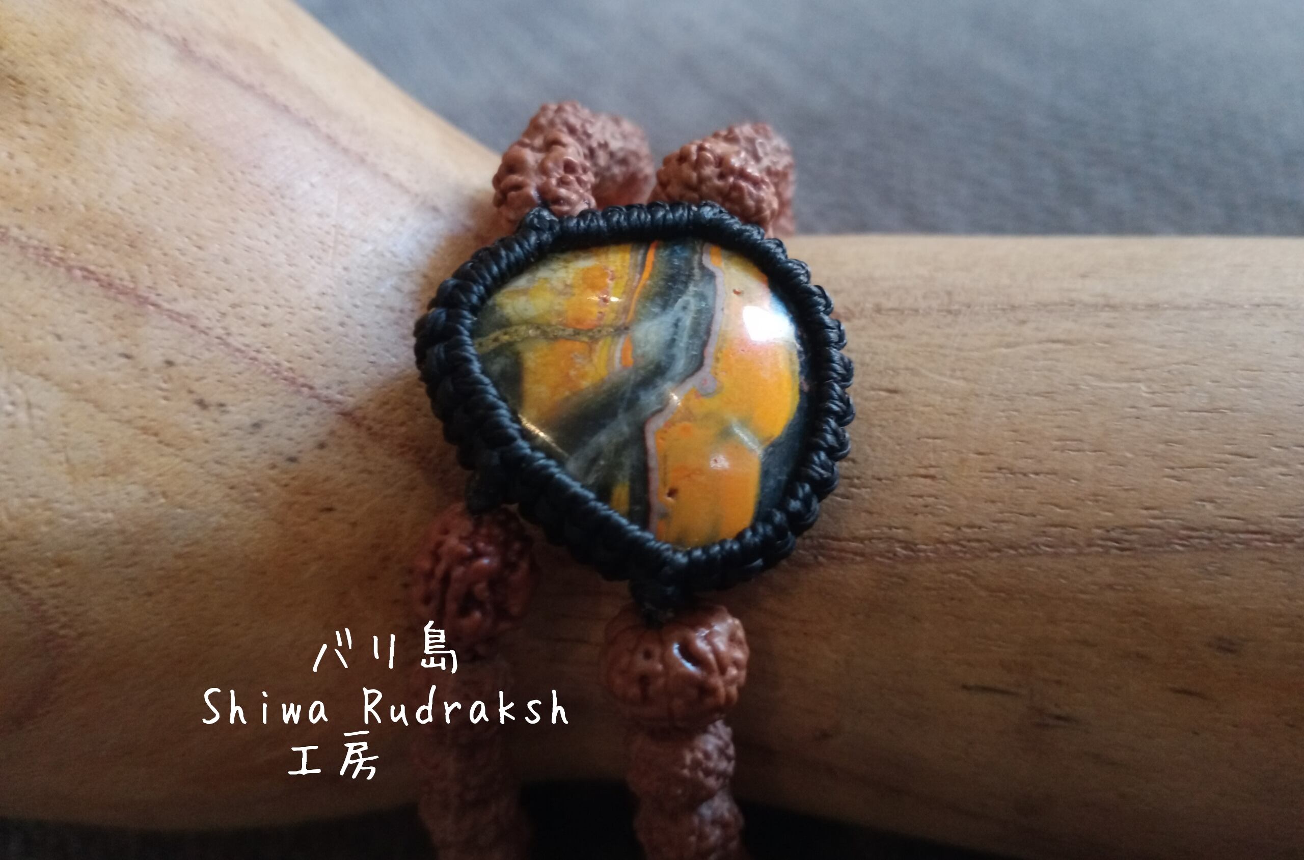 インドネシアの天然石「バンブルビージャスパー」をマクラメ加工にした、2連紐ブレスレットです。