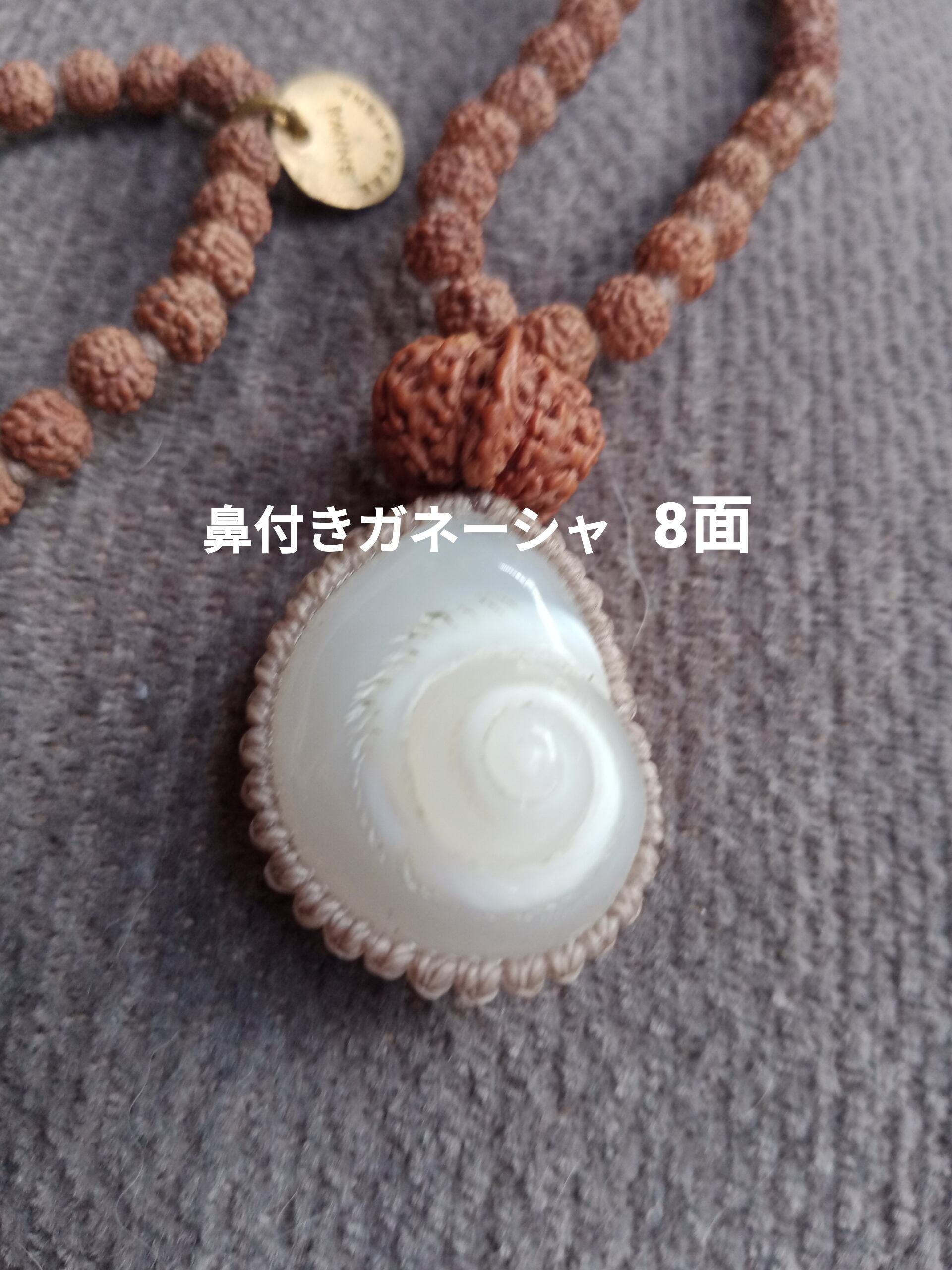 ルドラクシャに象の鼻のような隆起があることから「鼻付きガネーシャ」と呼ばれる「鼻付きガネーシャ8面」は、8面の効果を発揮しながら「ガネーシャ」様ともコンタクトが出来ると言われています。