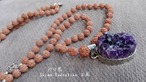 原石から買い付けた『アメジストクラスター』を卵型にカットして製作した、ペンダントトップをメインにした108粒マーラーです。