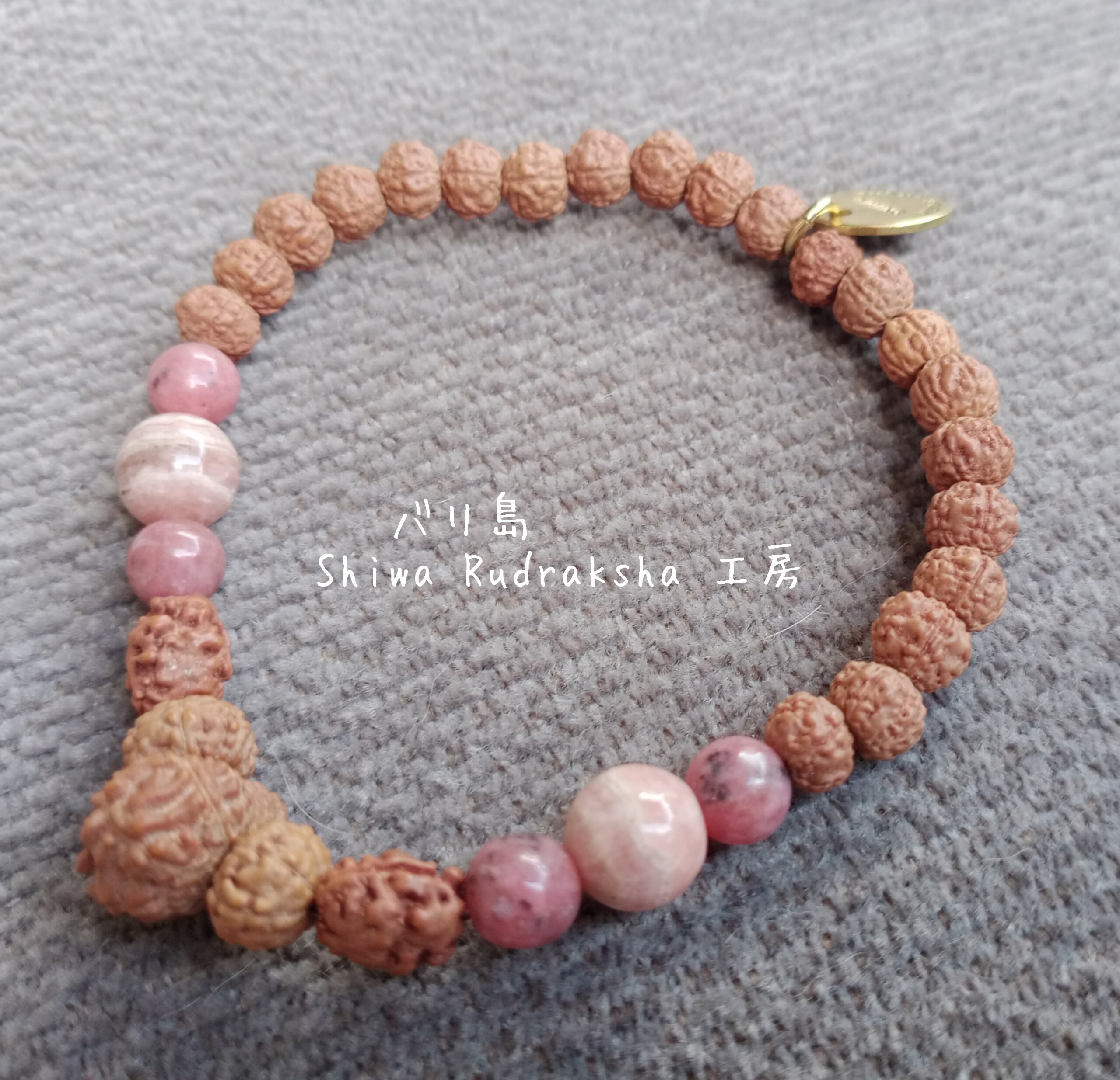 小さめの13面ルドラクシャに合わせて、5面も小粒を使用した可愛いブレスレットです。