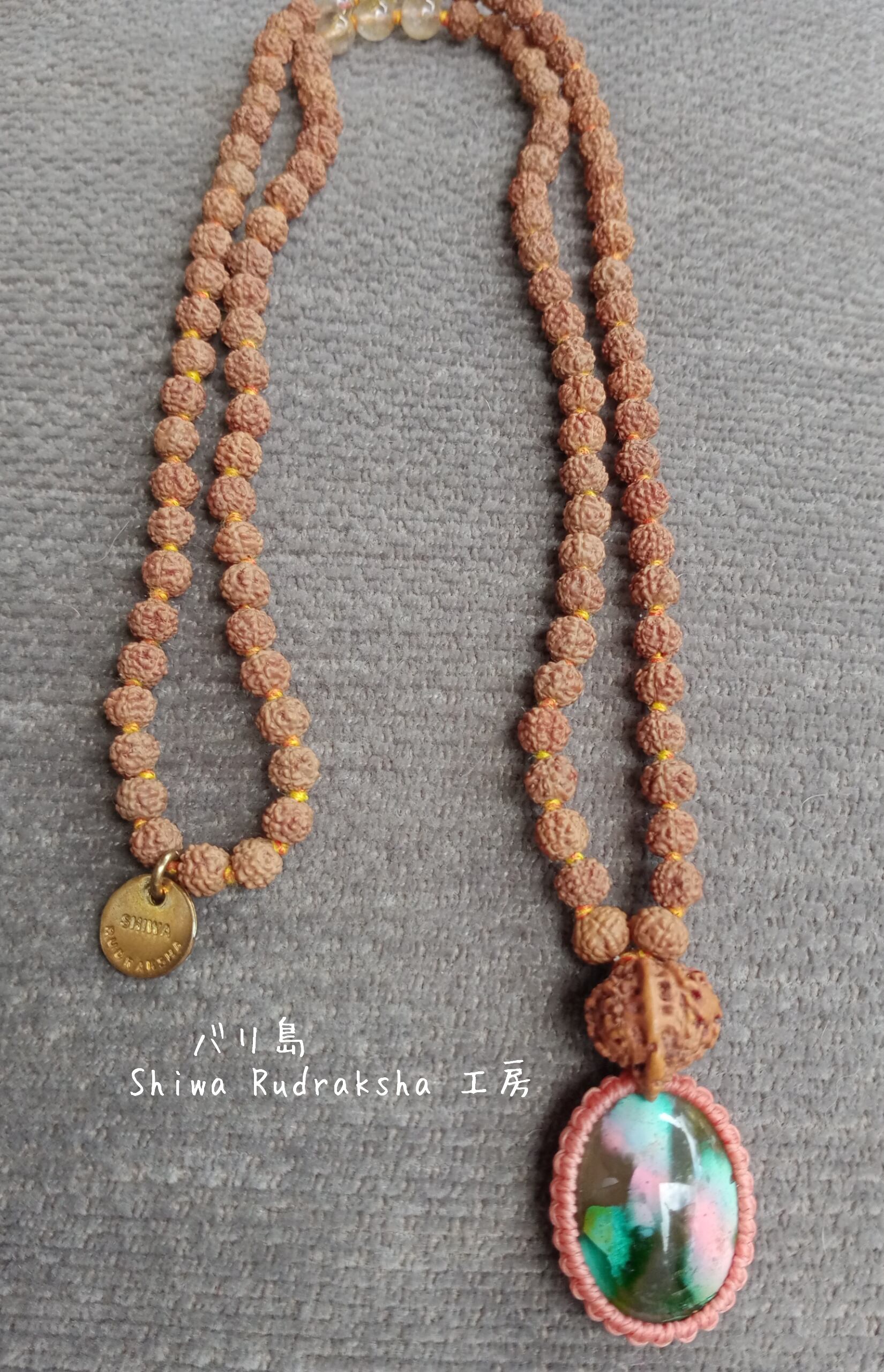 ルドラクシャは、『パンチャワルナ』の左右に小粒の『7面ラクシュミー』を組み入れ、パンチャワルナの上のルドラクシャはレアビーズ『鼻付きガネーシャ8面』を組み入れました。