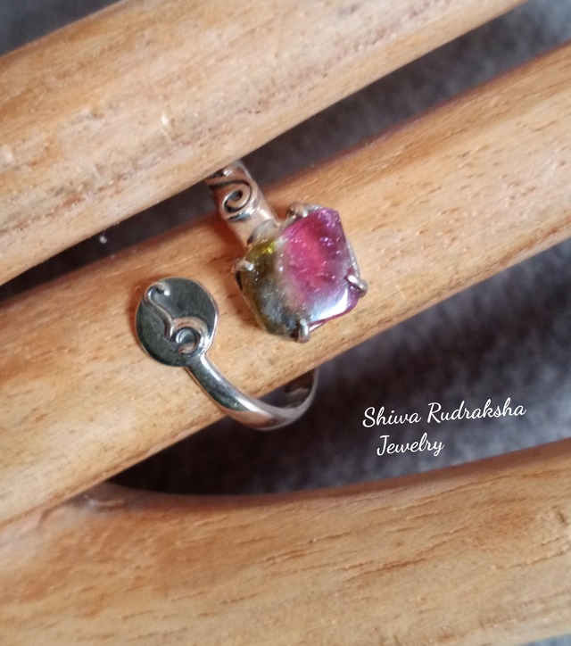 【ウォーターメロントルマリン】Shiwa Rudrakshaオリジナル★シルバー925リング(A)