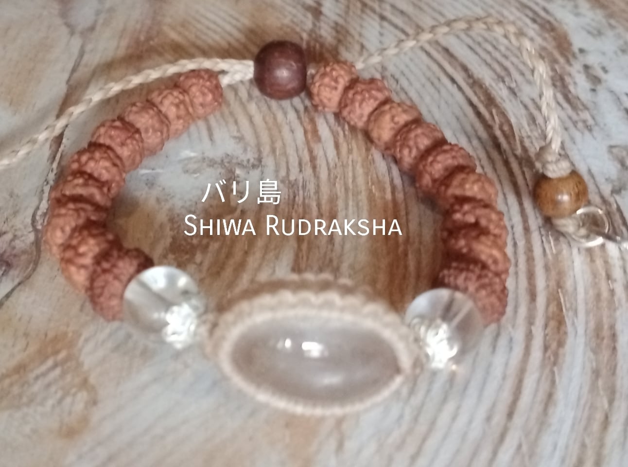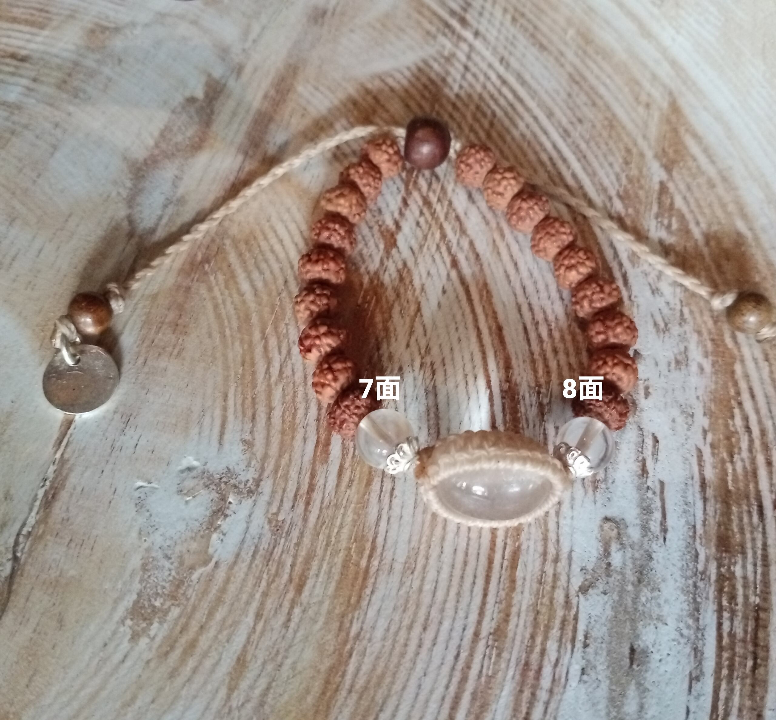 ★ルドラクシャ5面(約8mm)・ルドラクシャ8面(約9mm)・ルドラクシャ7面(約9mm)・クリスタル(約8mm)・インドネシア産クリスタル水晶(約22mm×約15)