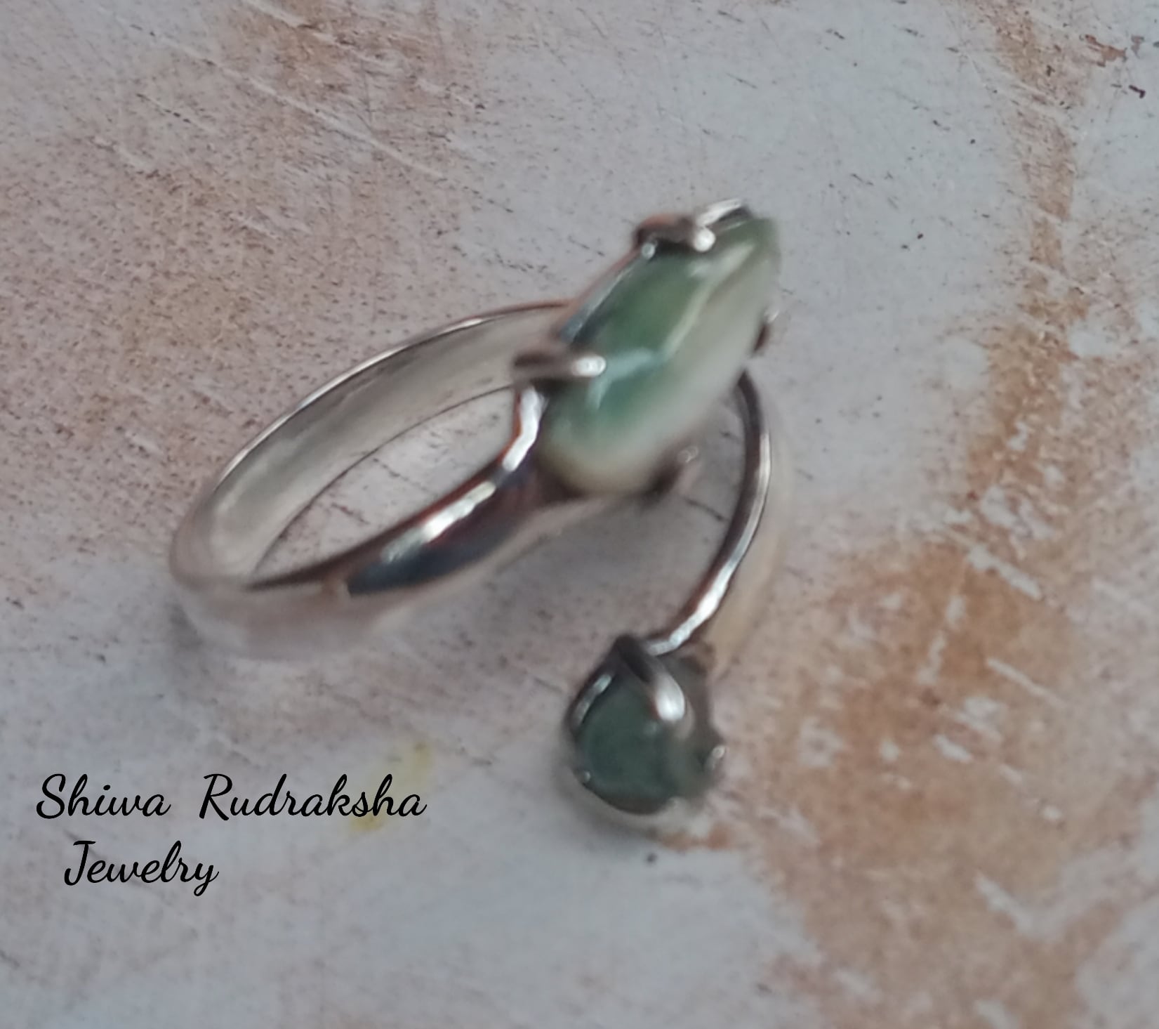 「グリーンケオン」を研磨して「グリーンエメラルド」のコンビネーションリングに特注オーダーしました。