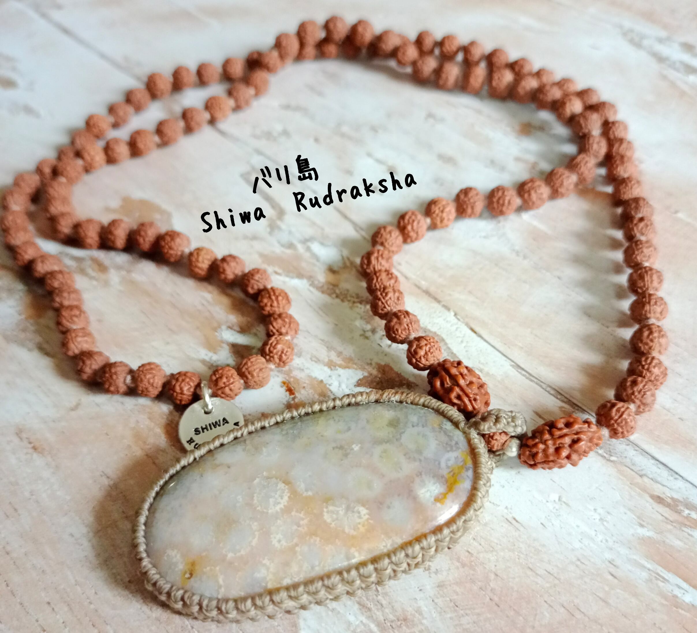 インドネシア産「フォッシルコーラル」と、小粒ルドラクシャだけのシンプルなマーラーです。(^_^)