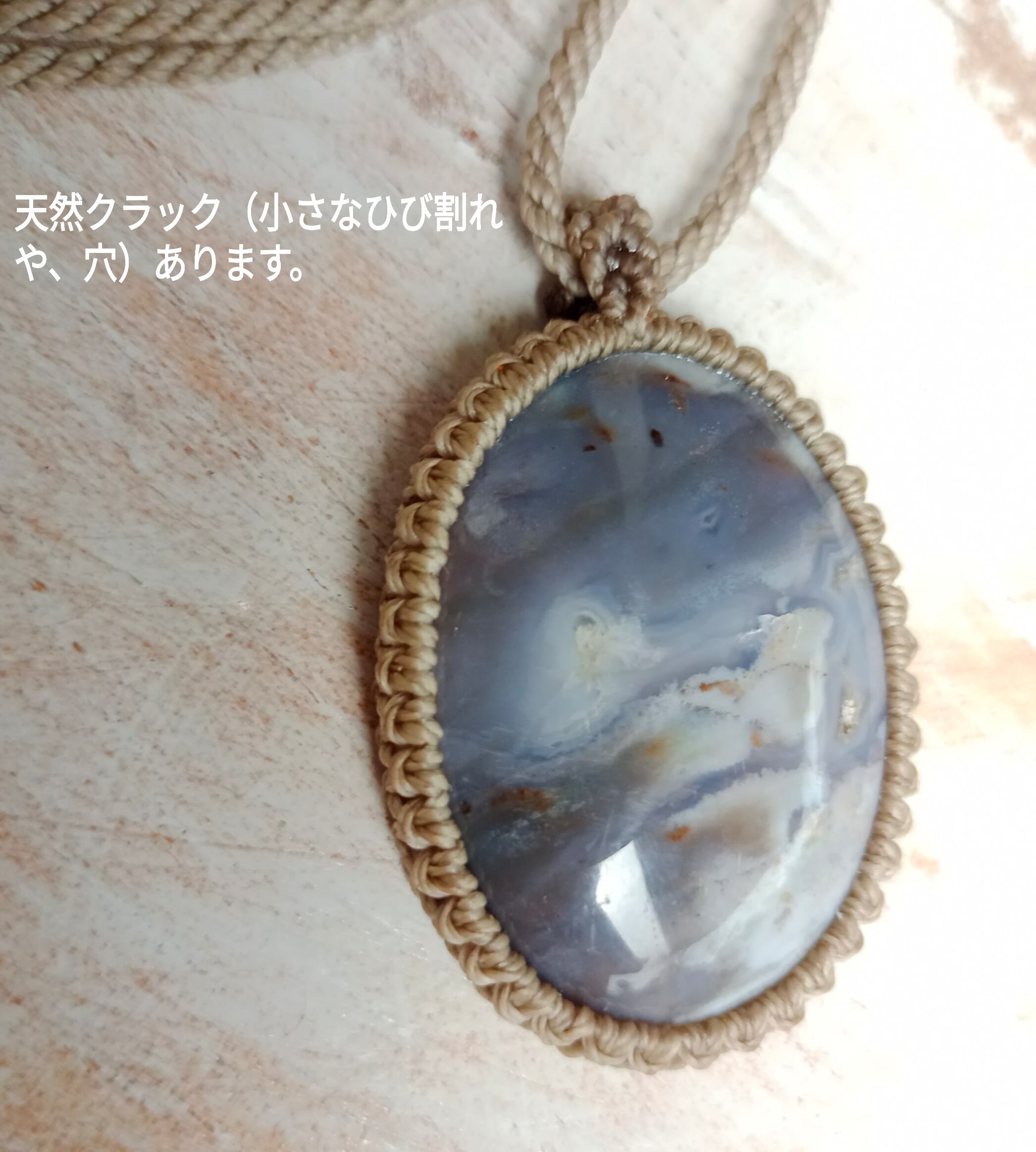 「オーシャンジャスパー」をマクラメ加工のペンダントトップにした紐ネックレスです。