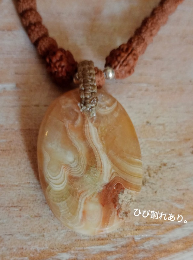 「アゲート(瑪瑙)」をペンダントトップにしたルドラクシャ紐ネックレスです。