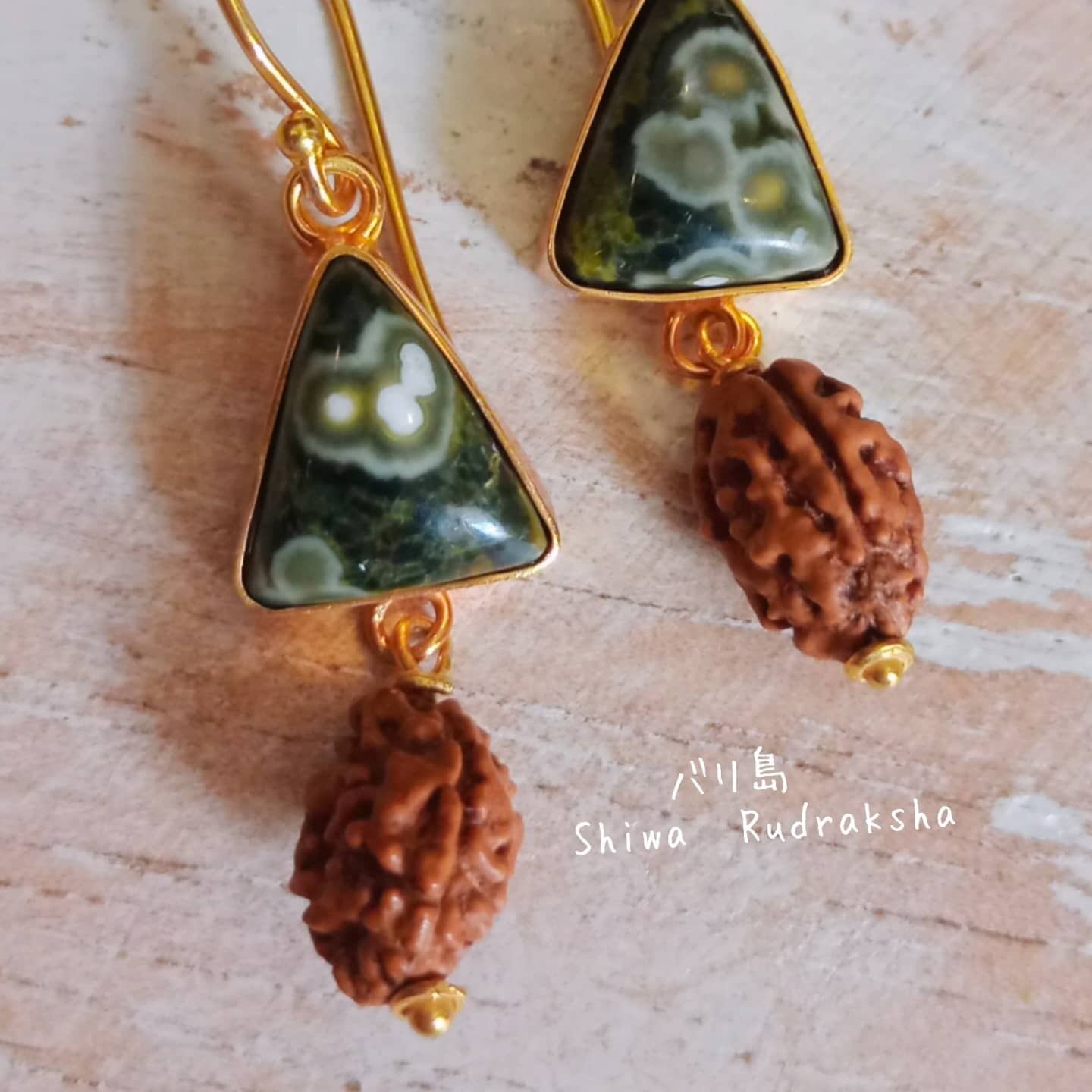 ★ルドラクシャ2面(約10mm)・オーシャンジャスパー(約14mm×約13mm)