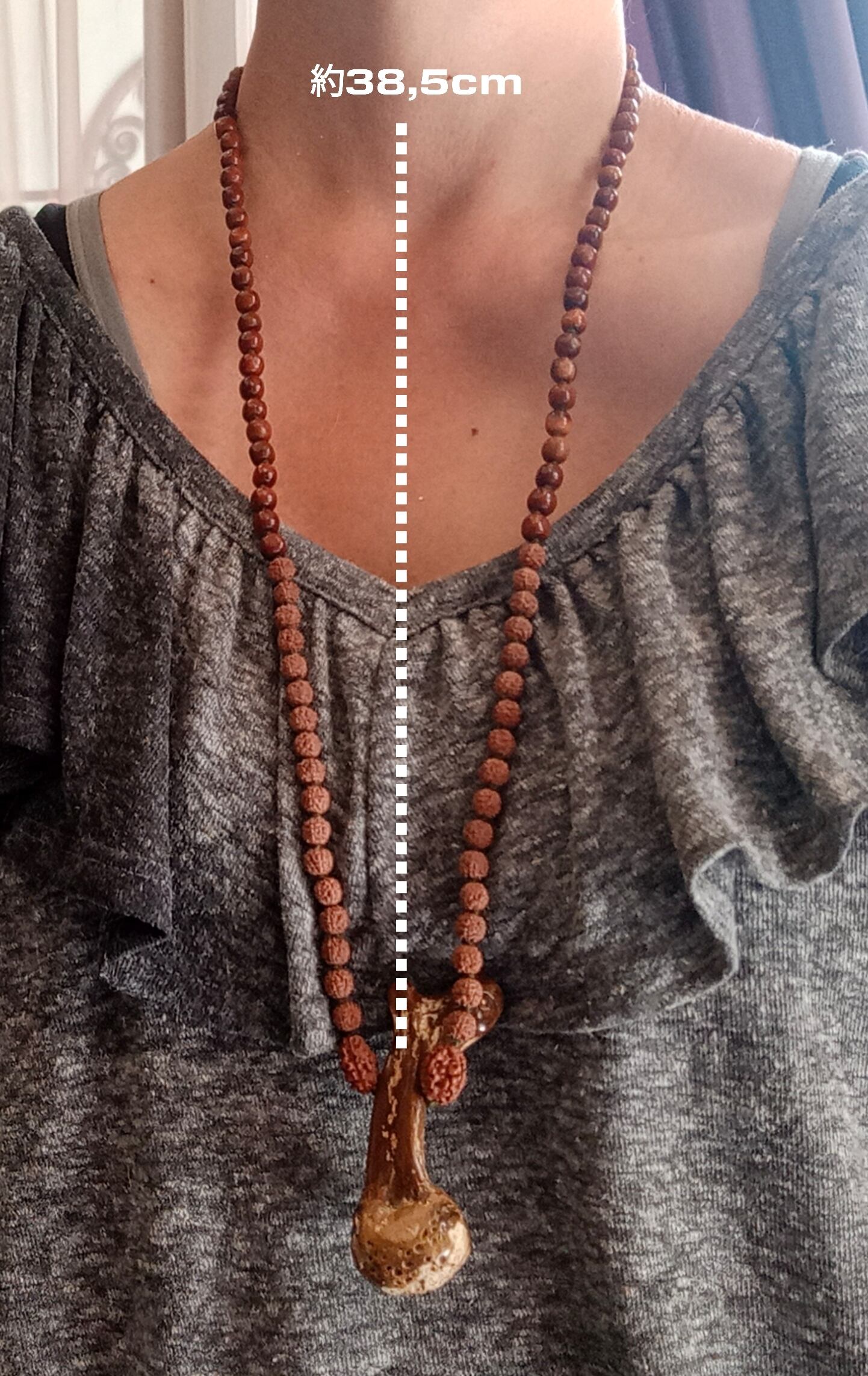 紅茶の中にミルクを垂らしたような色の、海底の珊瑚の木『ULI GUNDI(ウリ グンディ)』の根っこ部分をペンダントトップにした108粒マーラーです。