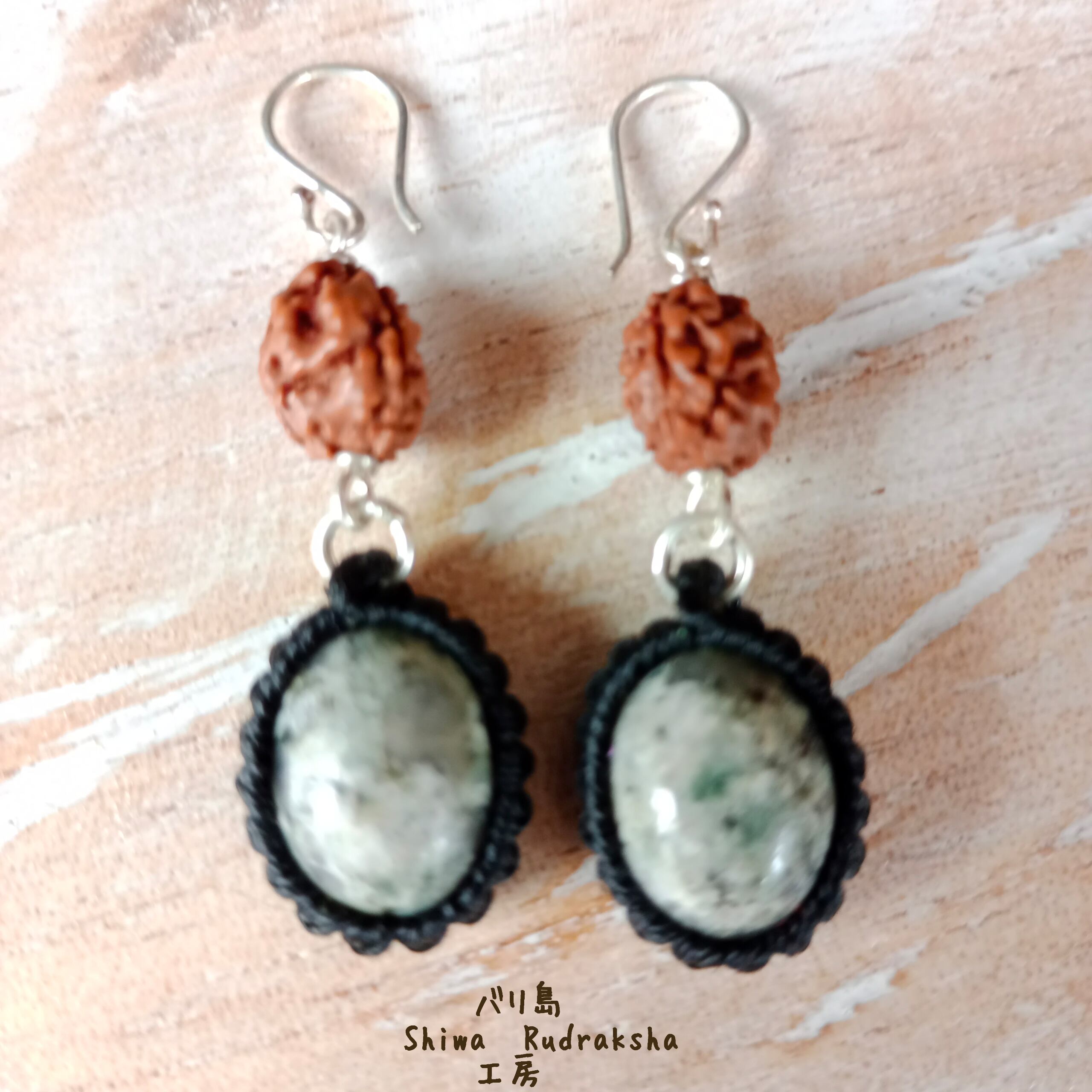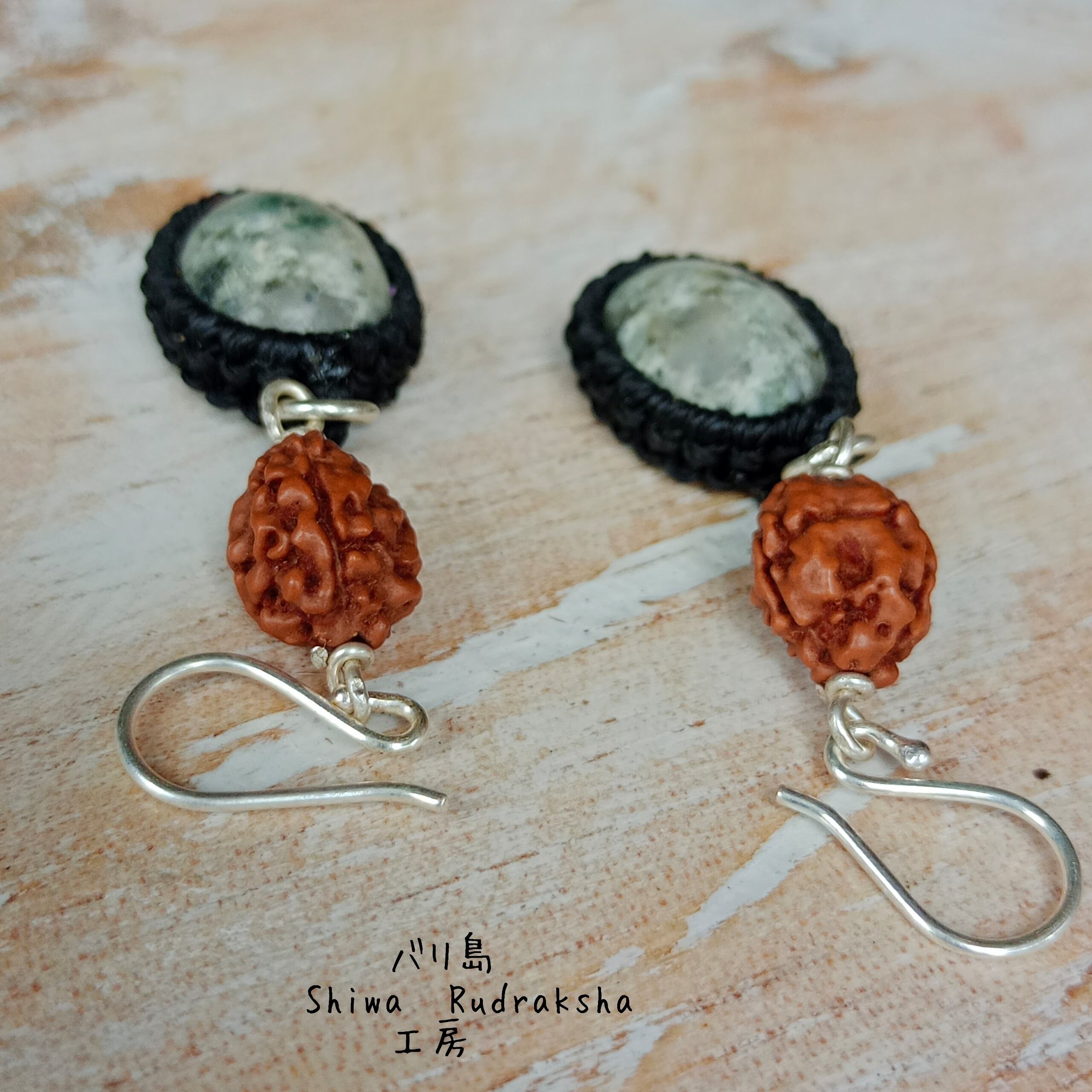 バリ島シガラジャの神聖なストーン「プラキストーン」をマクラメ加工して製作したピアスです。