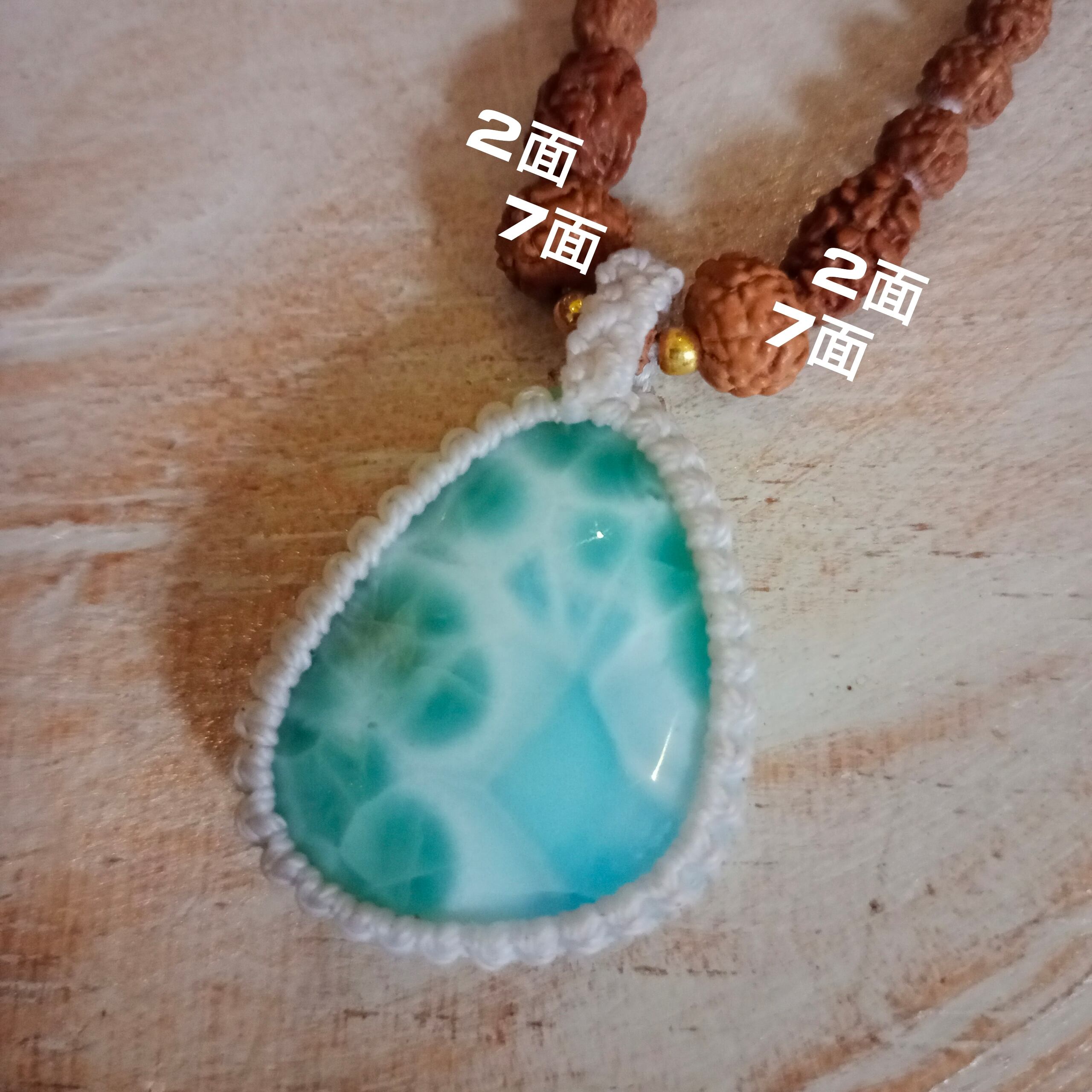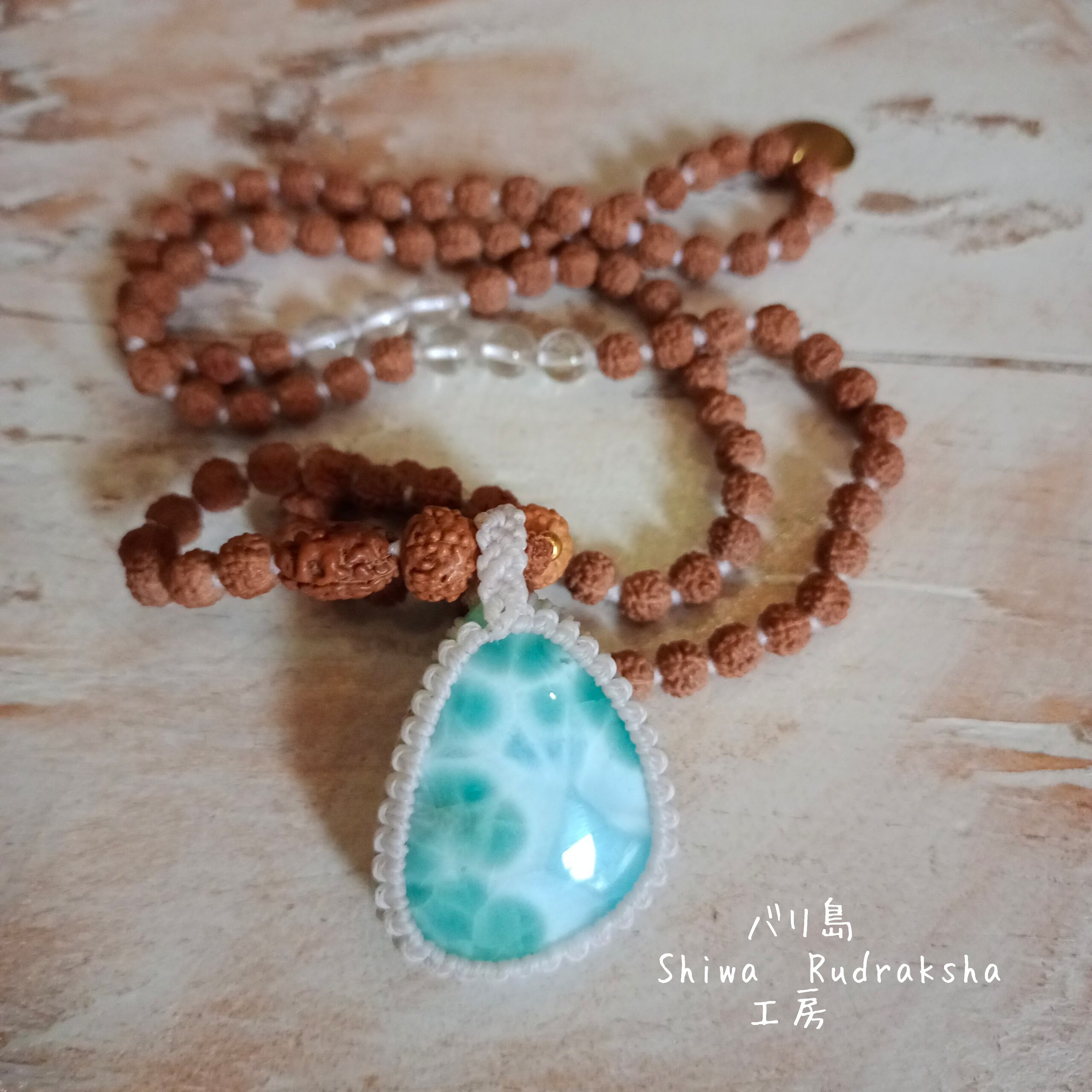 ★ルドラクシャ5面(約6mm)・ルドラクシャ2面(約縦10mm)・ルドラクシャ7面(約9mm)・クリスタル水晶(約6,5mm)・ラリマー(約34mm×約29mm)